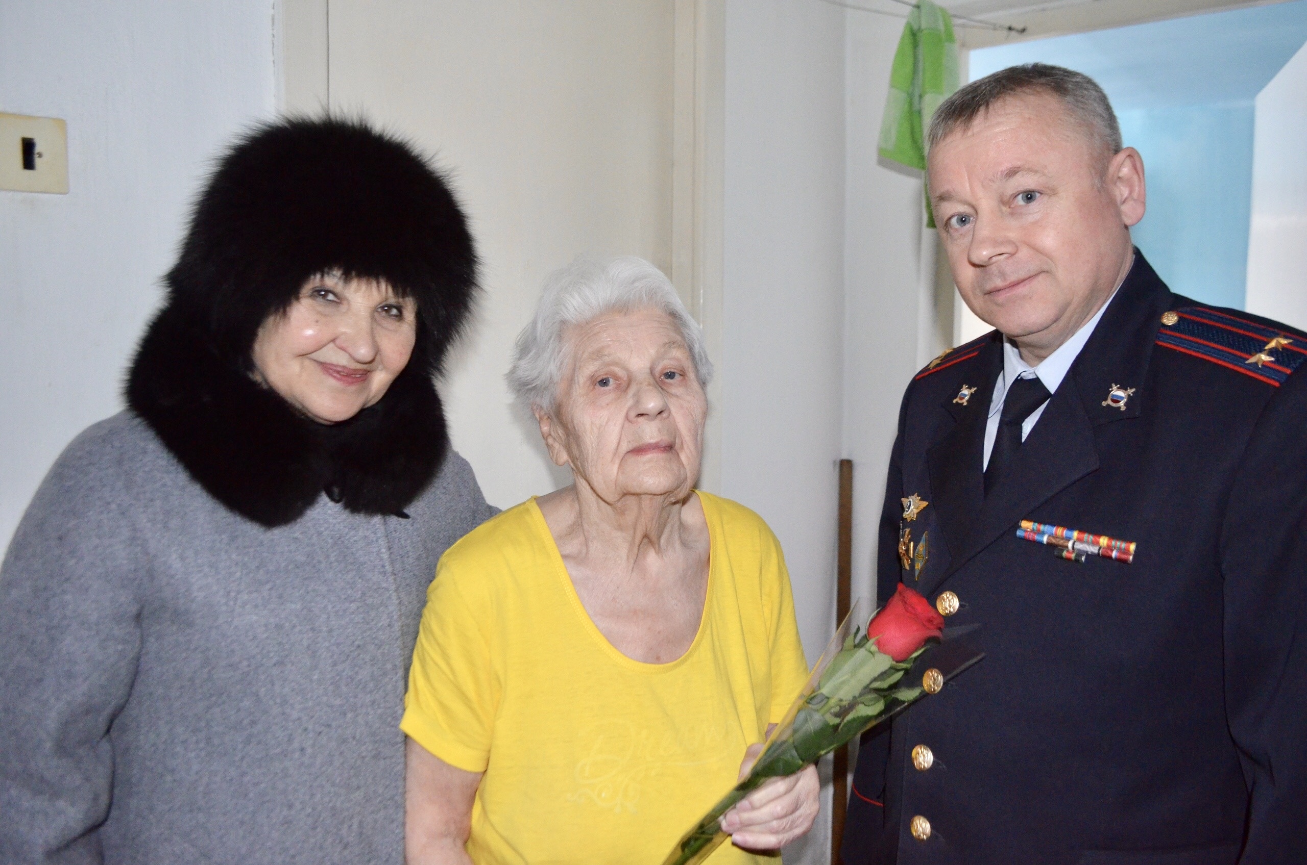Первый визит к Тамаре Леонтьевне Бородиной был не только приятным, но и очень почетным и ответственным. Тамара Леонтьевна является ветераном ВОВ и много лет проработала в Ирбитском ОВД. Ей вручили памятную юбилейную медаль "75 лет Победы в Великой Отечественной войне 1941-1945 гг", выразили слова благодарности и поздравили с наступающими праздниками. Праздничное поздравление и подарок передал также глава города Ирбит Николай Юдин.