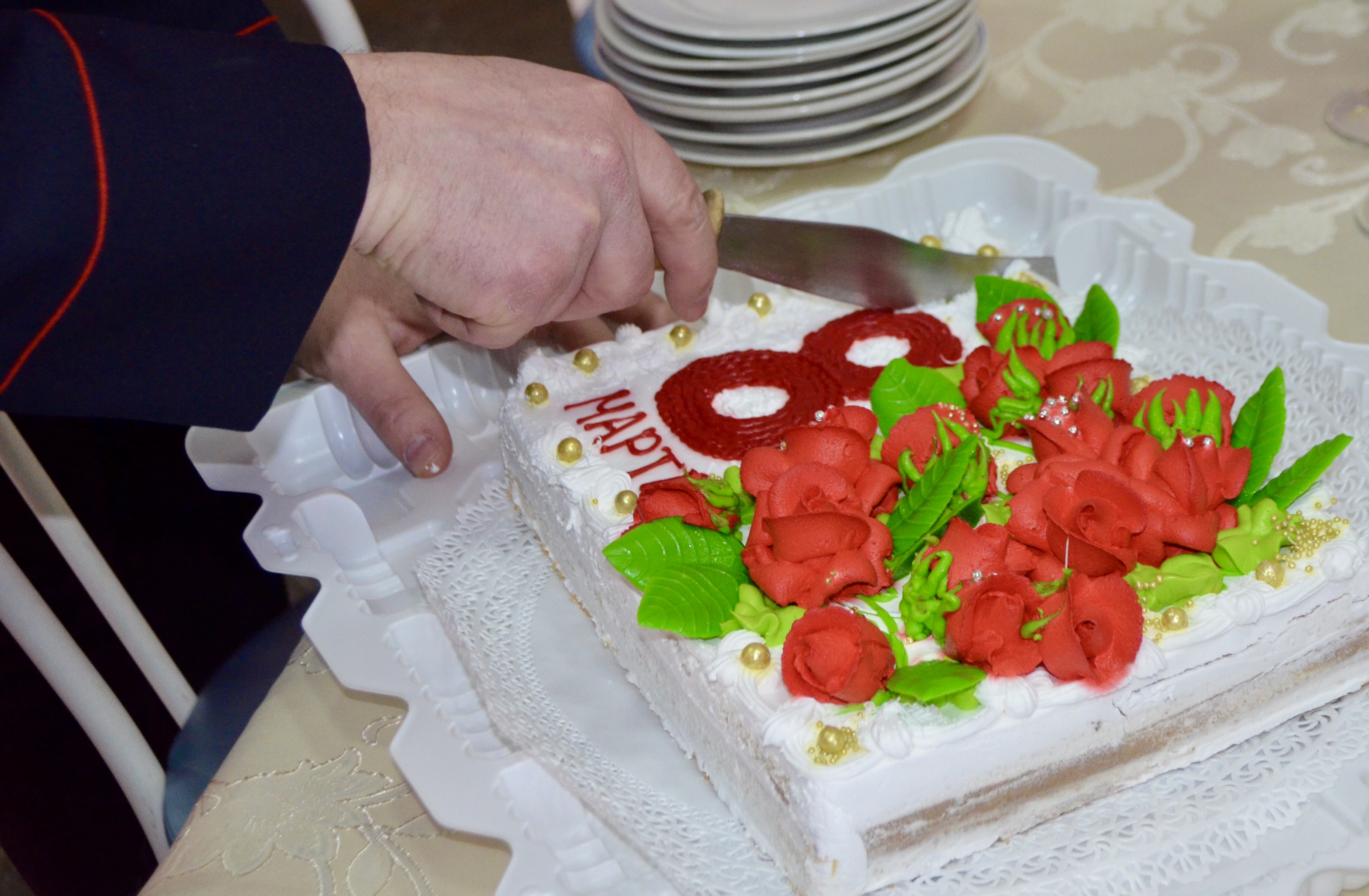 Поздравления прозвучали также от председателя Общественного Совета Алексея Большедворова, начальника по работе с личным составом Николая Булдакова и депутата Государственноц Думы Игоря Торощина, который подарил праздничный торт.