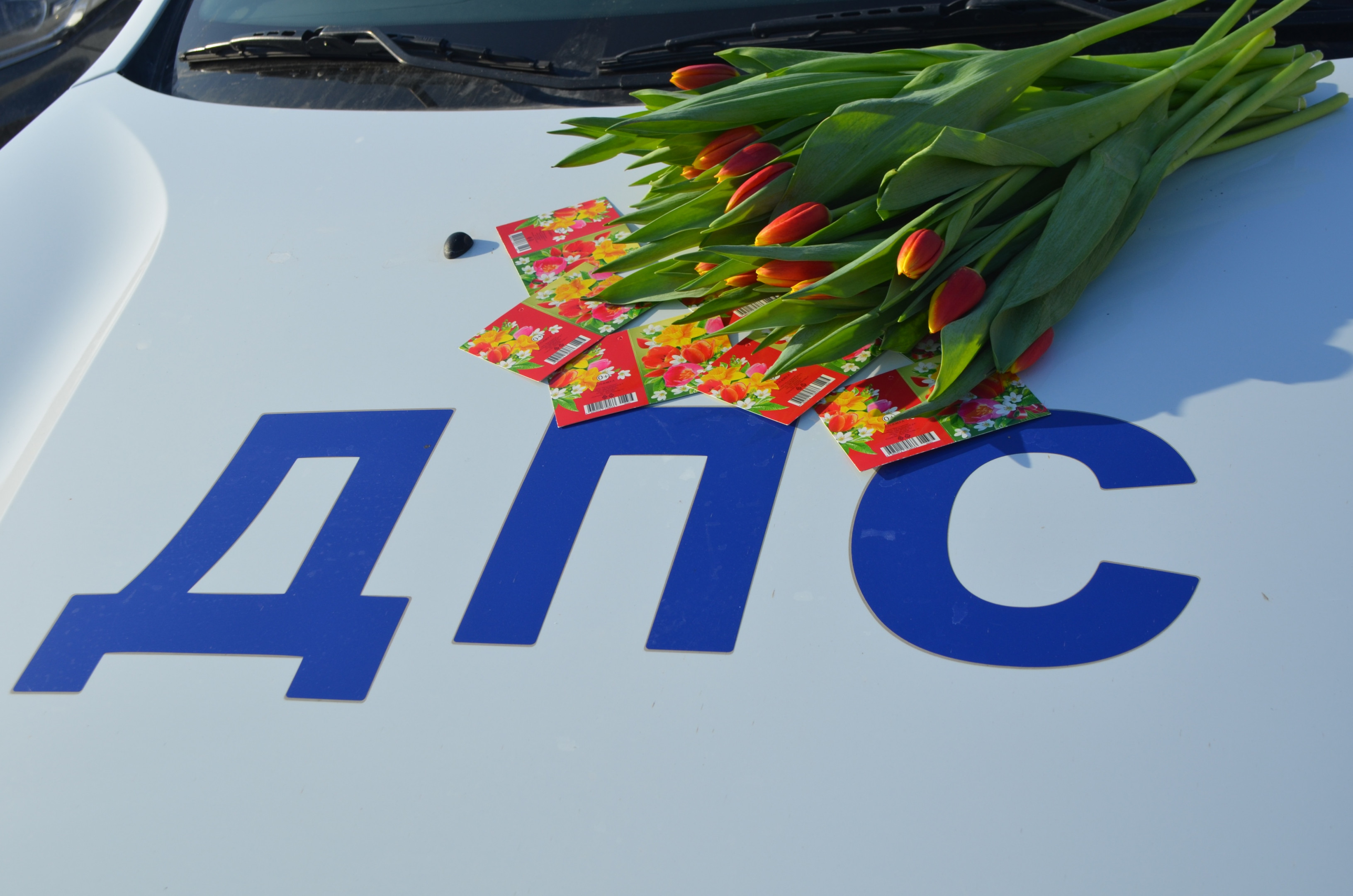 Вместо проверки документов - цветы, поздравления. Нечасто жезлы ГИБДД не портят настроение, а наоборот – дарят радость. В преддверии праздника сотрудники дорожной полиции поздравили автоледи с наступающим женским днём - 8 марта.