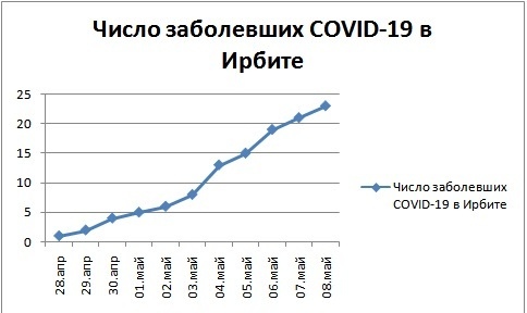 По данным городского оперативного штаба, на 12.00 8 мая в Ирбите официально подтверждено 23 случай заражения коронавирусом. Все пациенты, имеющие подтвержденное лабораторными исследованиями заражение вирусом и симптомы заболевания, направлены в больницы Екатеринбурга и Верхней Пышмы. Под наблюдением специалистов находится 147 человек, которые входят в первый круг контактов заболевших (члены семьи, коллеги по работе).