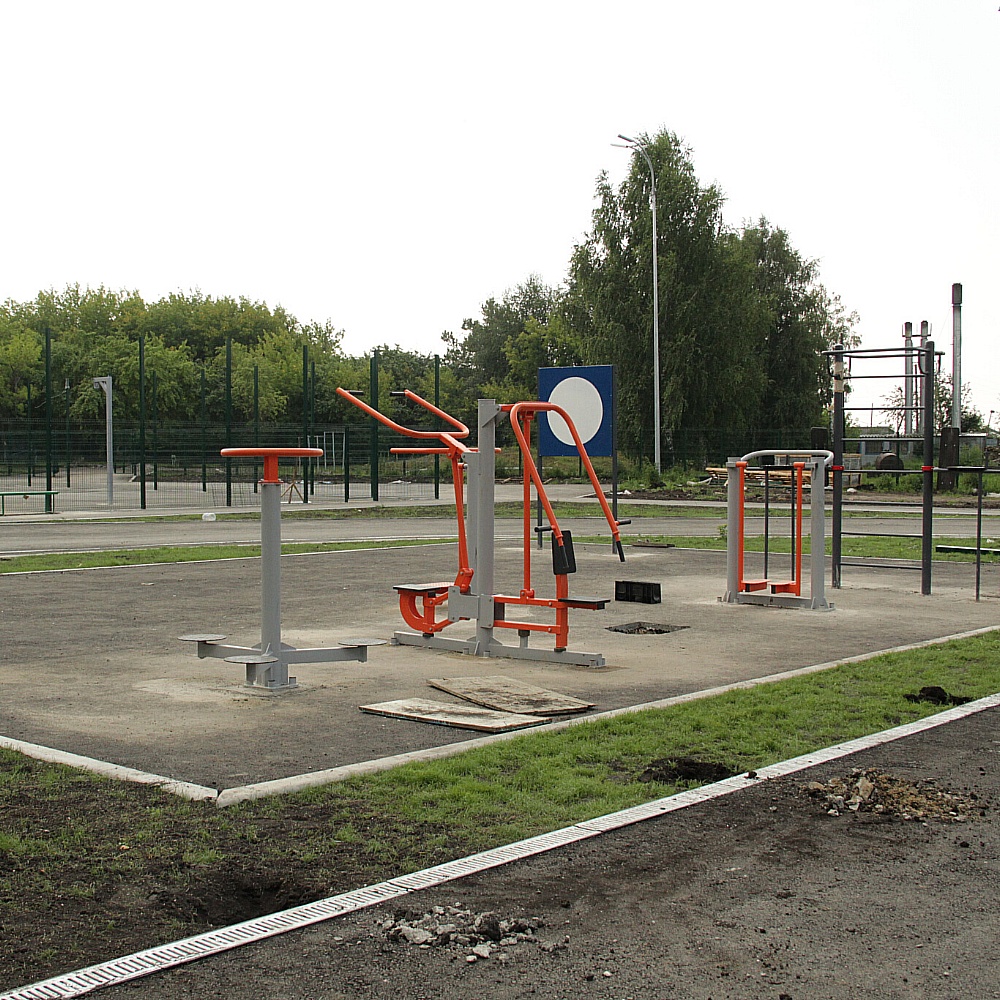 Бригада продолжает работать. Полностью уложено асфальтовое покрытие, установлено несколько малых архитектурных форм, завершается строительство баскетбольной и волейбольной площадок.