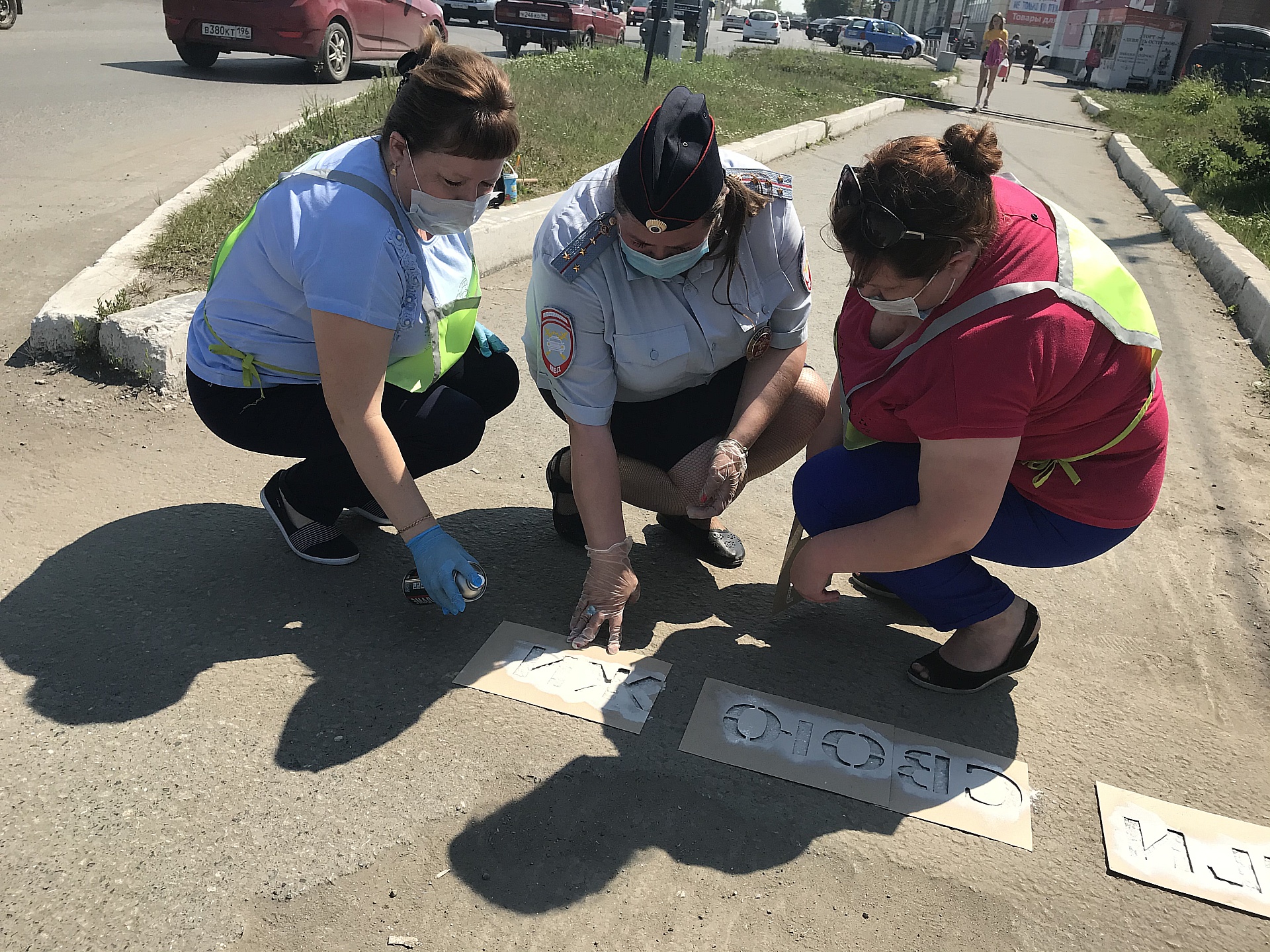 10 июля в рамках проведения профилактического мероприятия «Внимание – дети!» Госавтоинспекция Ирбита совместно с педагогами МБДОУ «Детский сад № 10» провели акцию "#ПДДнаАсфальте", нанеся надписи на асфальте перед одним из самых опасных мест перехода пешеходов через дорогу, нерегулируемом перекрестке улиц Советская и Белинского. При помощи краски и трафаретов участники акции нанесли надписи, которые должны привлечь внимание ирбитчан к теме безопасности на дорогах - "убедись в безопасности", "посмотри по сторонам", "возьми ребенка за руку", "береги свою жизнь".