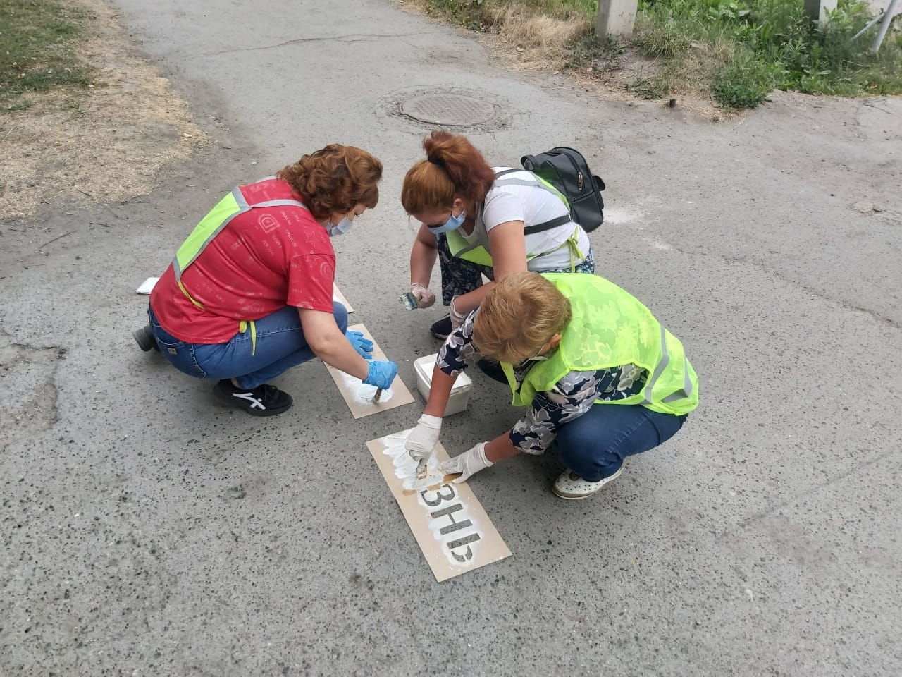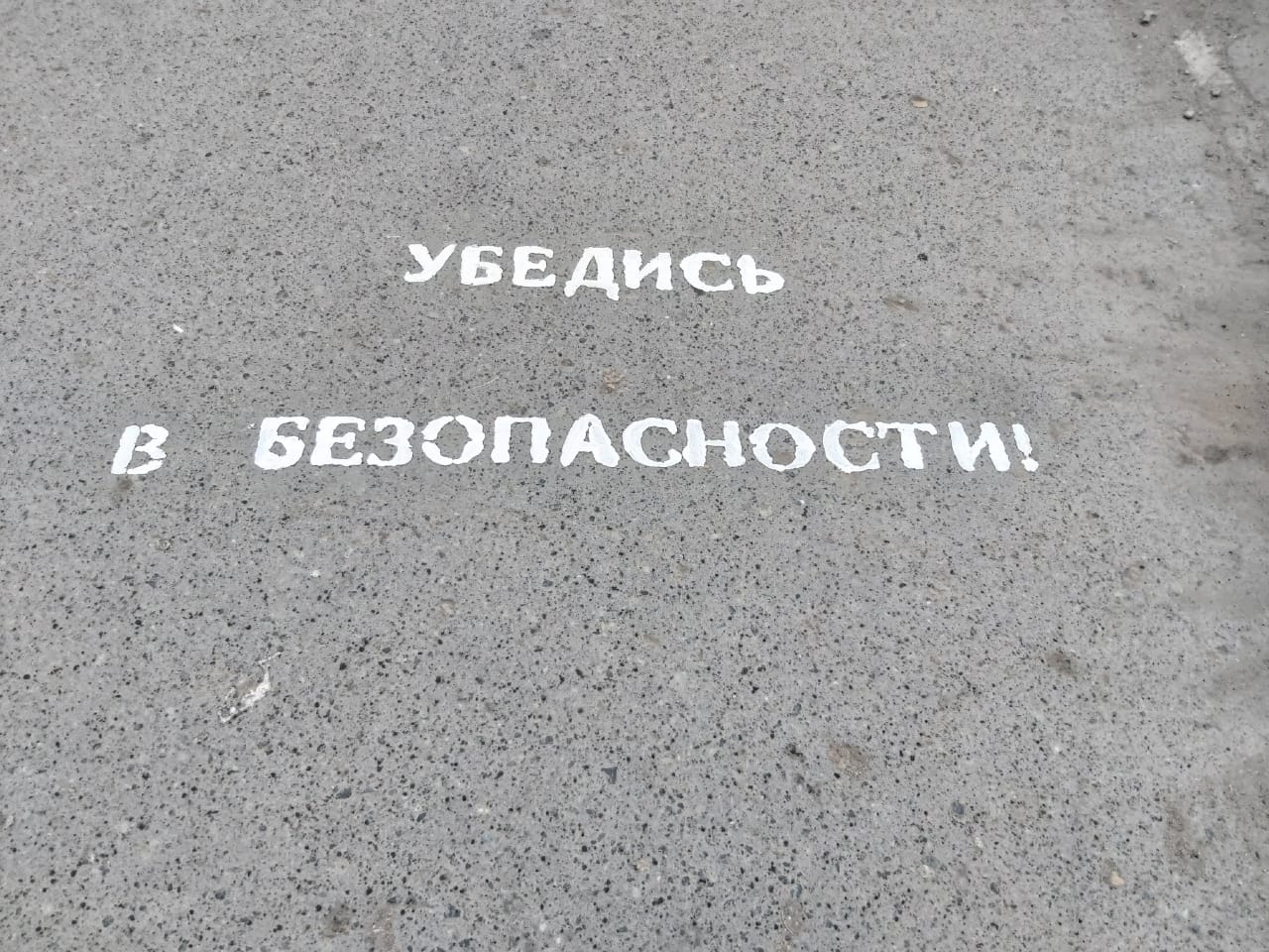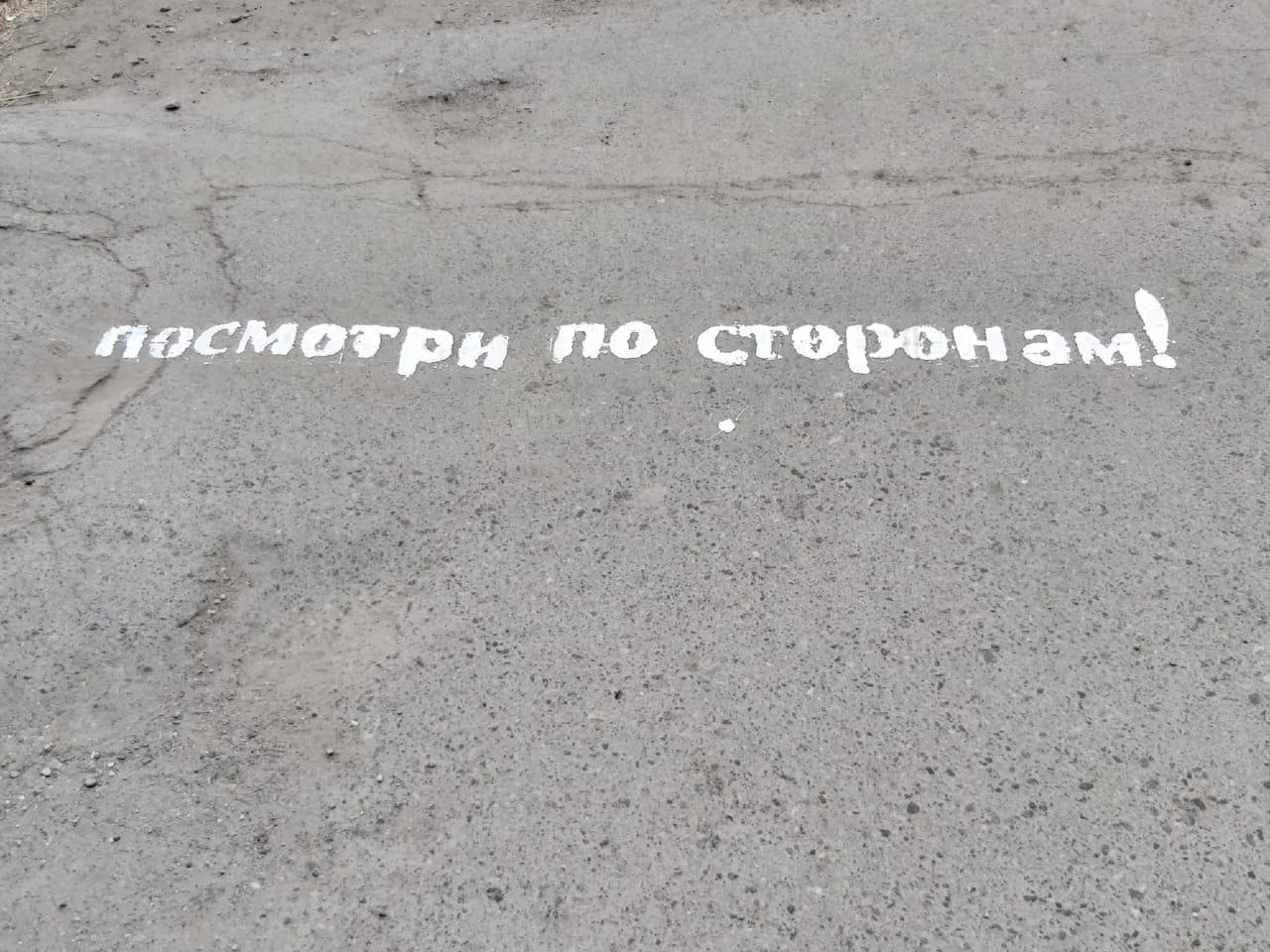 На асфальте с помощью краски и трафаретов участники акции написали призывы: «Возьми ребенка за руку», «Посмотри по сторонам», «Береги свою жизнь», «Убедись в безопасности». Яркие надписи появились с целью привлечения внимания общественности к проблеме безопасности на дорогах, ведь пешеходы и велосипедисты являются самыми незащищенными и уязвимыми участниками дорожного движения.