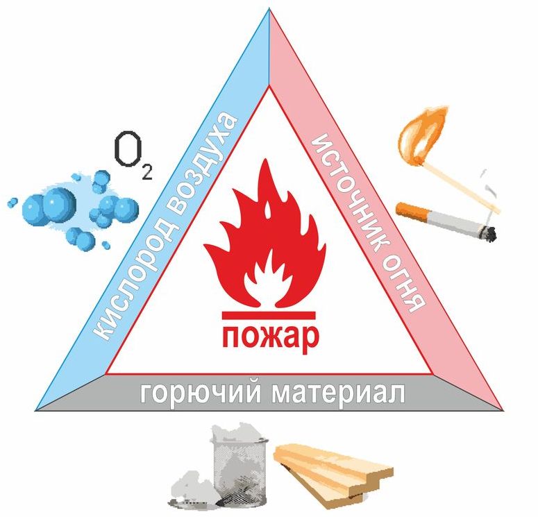 И так составляющие возникновения пожара, исключив один из которых можно не только потушить огонь, но и не допустить пожара: