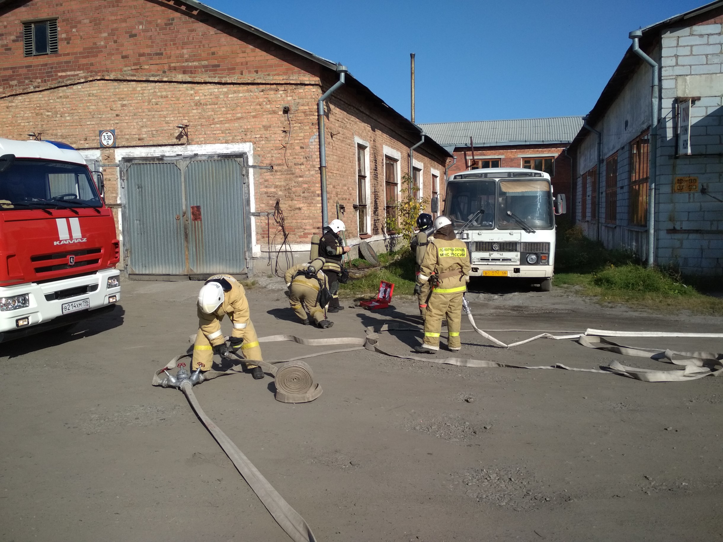 В рамках второго этапа штабной тренировки прошло практическое мероприятие по гражданской обороне, объектом отработки которого стало МУП МО город Ирбит «Ирбит-Авто-Транс» по адресу: г. Ирбит, ул. Высоковольтная, 6. Согласно замыслу там произошел условный пожар. После поступления сигнала на пульт централизованного наблюдения 60 пожарно-спасательной части на место вызова выехал дежурный караул на двух автоцистернах и автолестнице. По прибытию выяснилось, что при производстве работ в ремонтном боксе произошел розлив ЛВЖ и ее воспламенение. Общая площадь пожара составила 50 квадратных метров, из здания эвакуировано 10 человек и 2 пассажирских автобуса. Включившееся в дыхательные аппараты звено газодымозащитной службы путем согласованных действий довольно быстро локализовали горение ЛВЖ воздушно-механической пеной. Остальной личный состав караула, тем временем, защитой от огня вспомогательных помещений, несущих строительных конструкций, а также кровли при помощи пожарной автолестницы. В результате слаженной работы всех служб, успешного применения тактических умений и навыков работы с пожарно-техническим вооружением, пожар был локализован в кратчайшие сроки при минимальных ресурсных затратах.