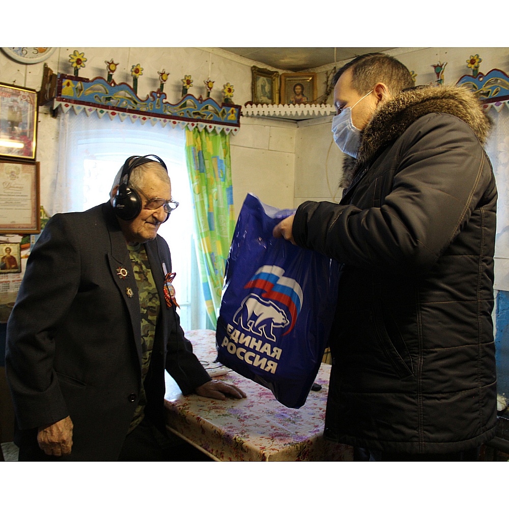 Сегодня в рамках Всероссийской акции «С новым годом, ветеран!» организованной партией «Единая Россия» Алексей Никифоров, глава Ирбитского муниципального образования вручил праздничный продуктовый набор и поздравил с предстоящими праздниками участника Великой Отечественной войны, Дмитрия Алистарховича Пушкарева.