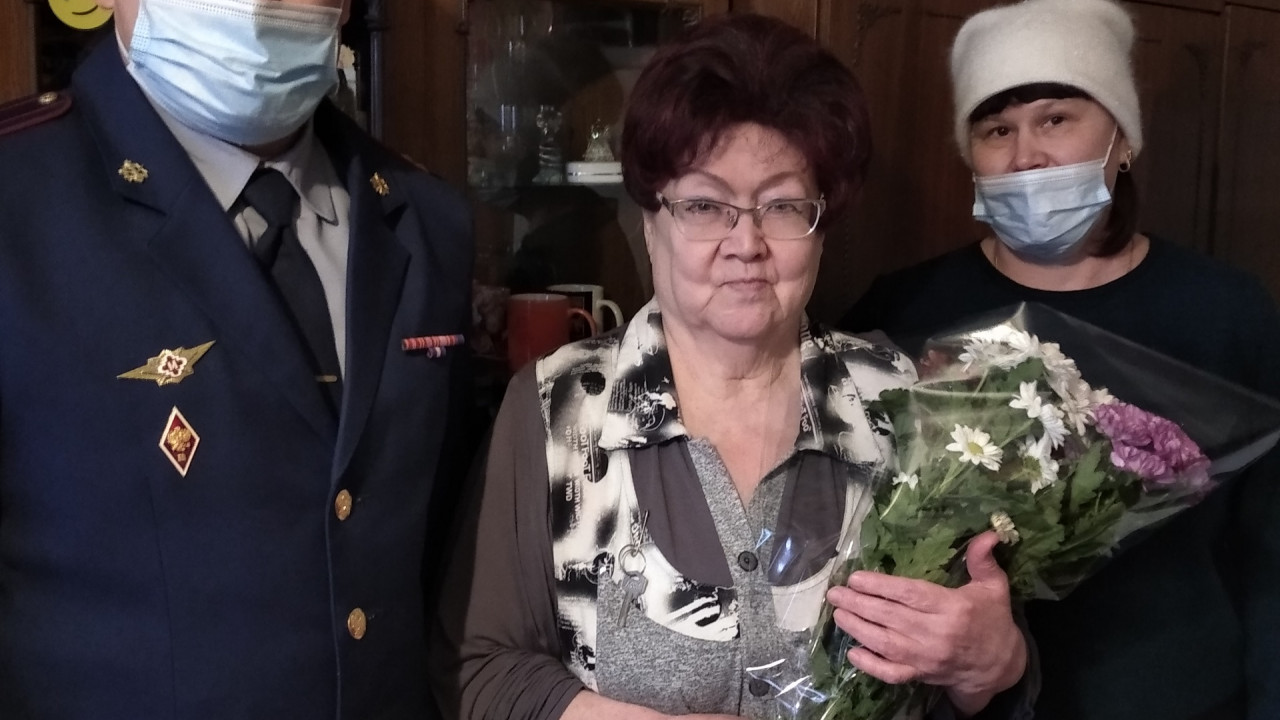15.01.2021 СИЗО-2 (г. Ирбит) заместитель начальника учреждения подполковник внутренней службы Александр Томилов и член совета ветеранов учреждения Татьяна Большакова поздравили от руководства и личного состава учреждения ветерана СИЗО-2 Федотову Тамару Ивановну с Юбилеем - 75 лет. Пожелали юбиляру долголетия, крепкого здоровья, оптимизма. Вручили подарок.