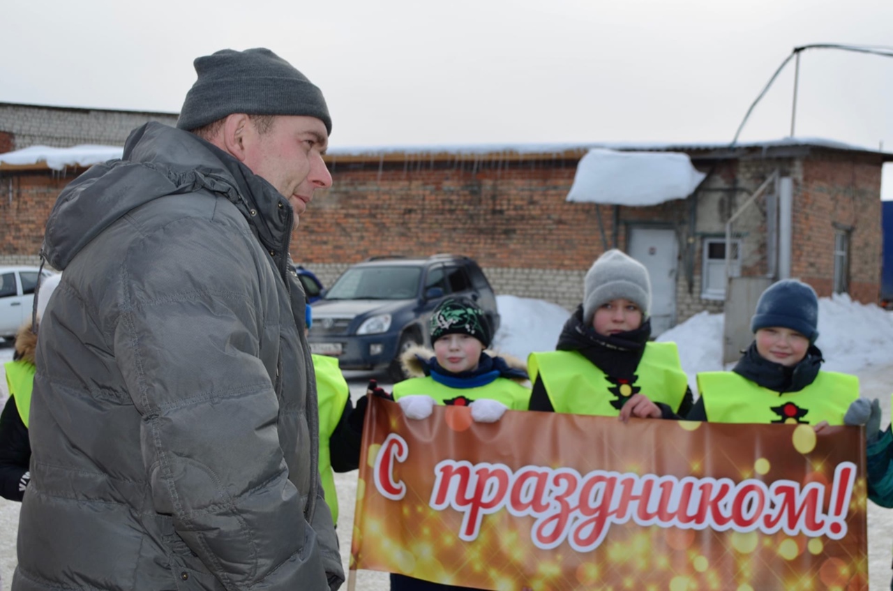 В ходе акции ребята напомнили водителям о важности соблюдения правил дорожного движения и прочитали поздравления в стихотворной форме. Полицейские, конечно же, присоединились к поздравлениям и напомнили водителям о соблюдении правил дорожного движения и внимательности за рулем.