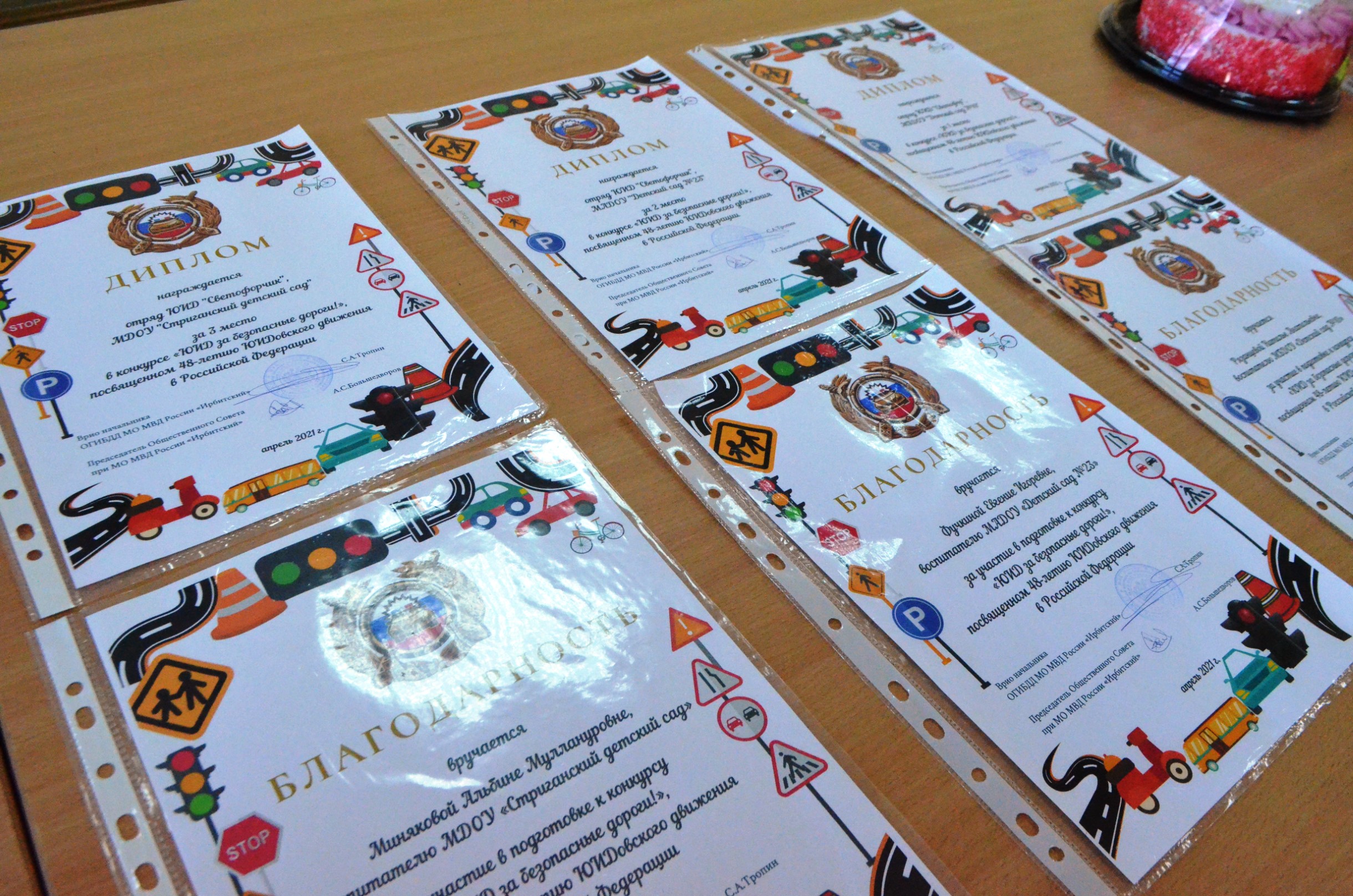 16 апреля в актовом зале местного отдела полиции состоялось торжественное награждение победителей челленджа. Поздравить юидовцев собрались врио начальника ОГИБДД МО МВД России «Ирбитский» Сергей Андреевич Тропин, инспектор по пропаганде БДД Татьяна Ивановна Бердюгина и председатель Общественного Совета при МО МВД России «Ирбитский» Алексей Сергеевич Большедворов. Старший лейтенант полиции Татьяна Бердюгина проверила знания юных инспекторов, задав ребятам ряд вопросов про правила безопасного поведения на дороге, с которыми они конечно с легкостью справились и дали правильные ответы. Капитан полиции Сергей Тропин поблагодарил юидовцев и их руководителей за участие в конкурсе и активную жизненную позицию в вопросах безопасности дорожного движения. Он вручил гостям почетные дипломы и благодарности, а председатель Общественного совета Алексей Большедворов – сладкие подарки. Представители отрядов юных инспекторов дорожного движения, которые стали победителями челленджа, в свою очередь вновь творчески проявили себя и прочли стихи, посвященные 85-летию ГИБДД. Сотрудники Госавтоинспекции отметили, что благодаря таким творческим юным инспекторам дорожного движения, ведущим активную пропаганду Правил дорожного движения, культура вождения и поведения на дорогах нашего города и района становится выше, а путь каждого из участников дорожного движения – безопаснее.
