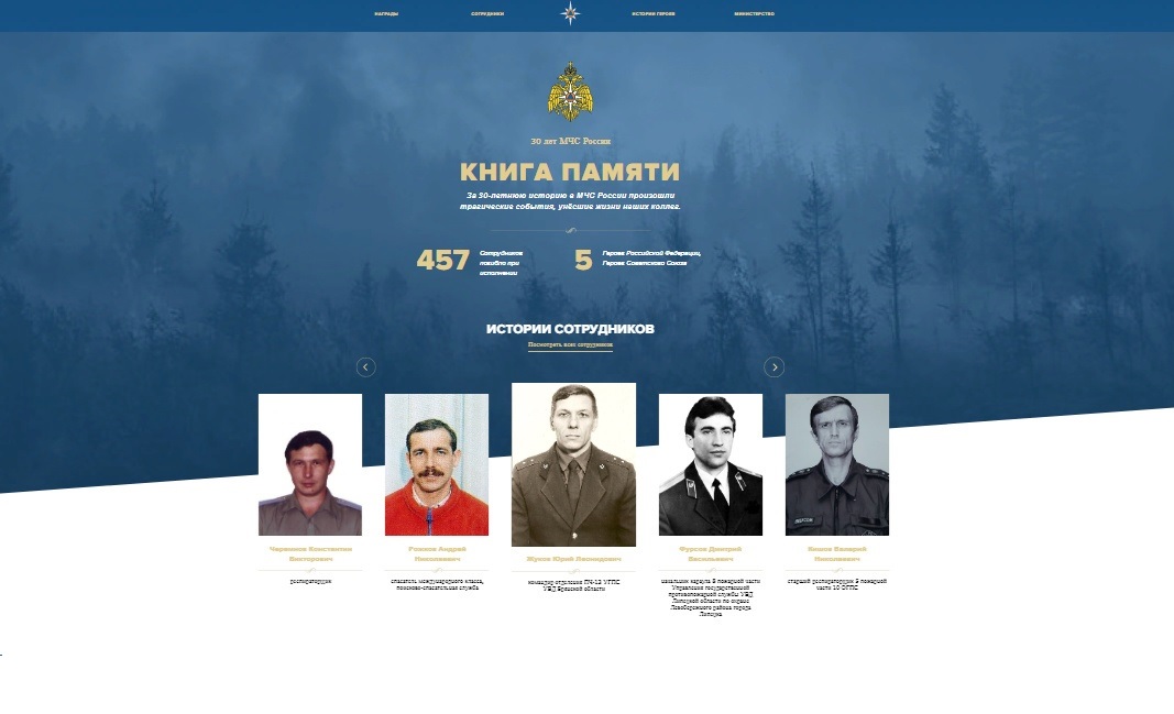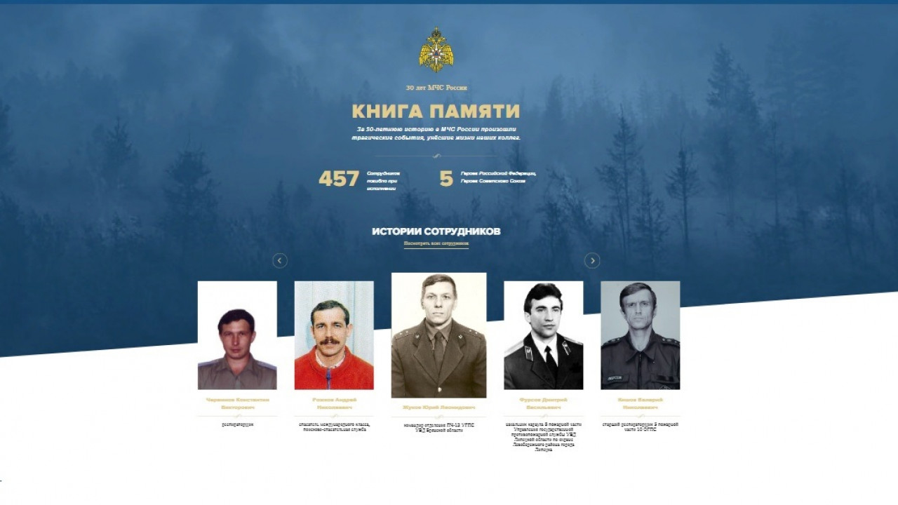 Сайт создан с целью сохранения и увековечивания памяти о сотрудниках МЧС России, погибших при исполнении служебного, воинского, профессионального и гражданского долга. Также ресурс поможет при формировании у подрастающего поколения уважения к профессии на примерах героизма и самопожертвования. Это первый подобный проект с архивными материалами, который реализуется Министерством. Уникальность ресурса заключается в том, что каждый желающий может внести в «Книгу памяти» своего собственного героя.