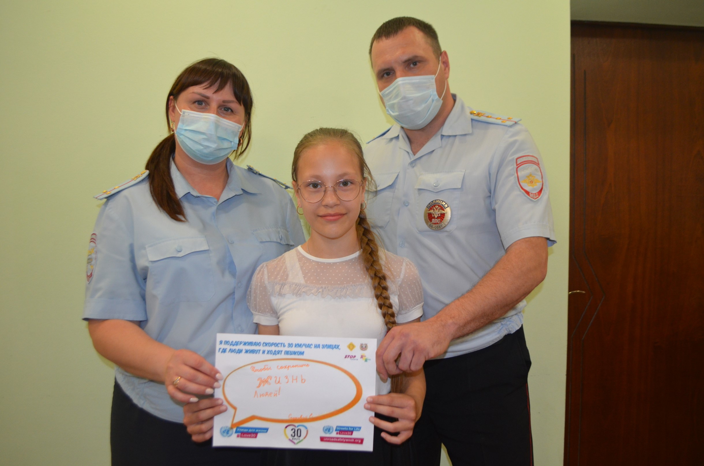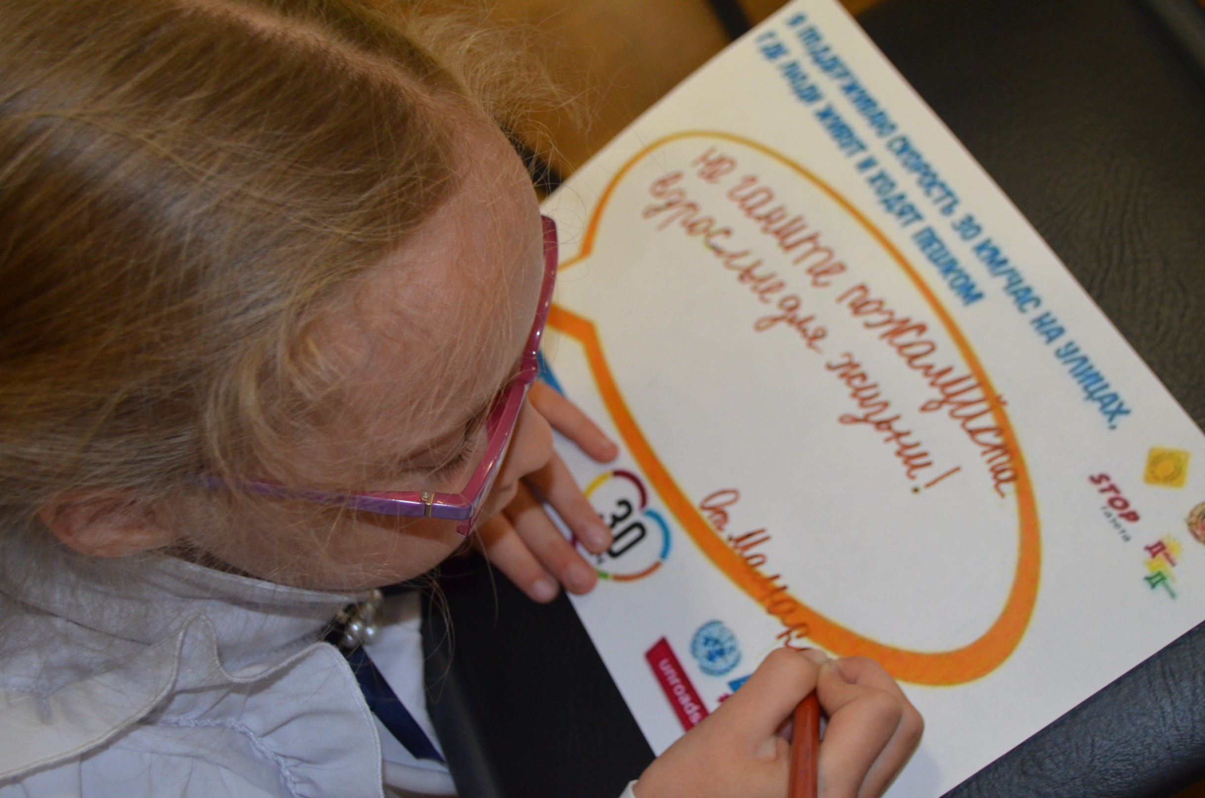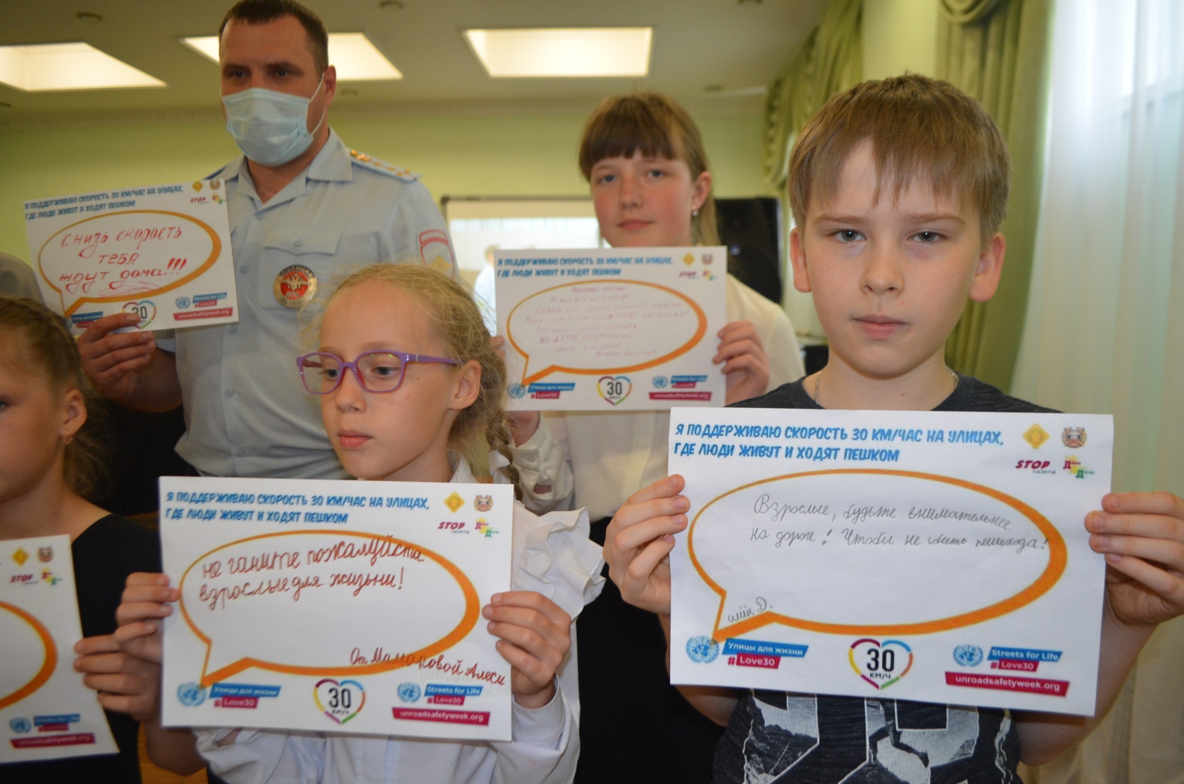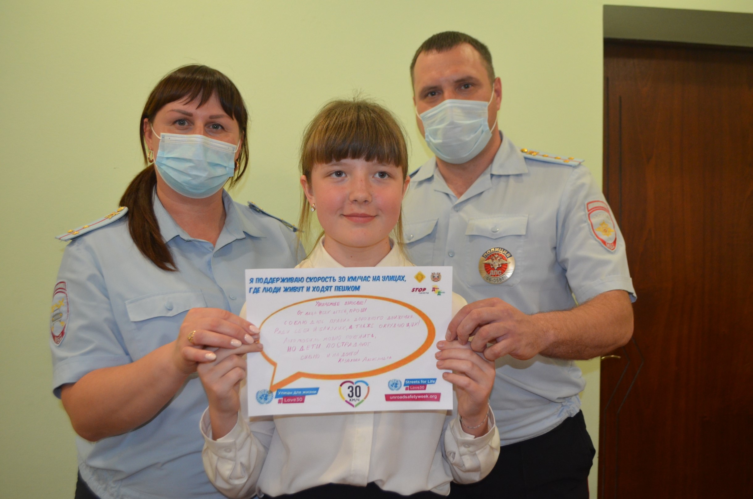 В завершении встречи ребята приняли участие в Шестой Глобальной неделе безопасности и подготовили обращения для водителей, в которых призвали их соблюдать скоростной режим. Бедулева Алина и Пятанова Ксения написали: «Соблюдайте правила ради себя и близких». Мочалова Ульяна обратилась к водителям: «Не надо нарушать правила дорог, когда в машине дети!». А подвести итог можно обращением Казаковой Александры, которая написала вот такие слова: «Уважаемые взрослые! От лица всех детей прошу соблюдать правила дорожного движения. Соблюдайте ради себя, ради близких, ради окружающих! Автомобиль можно отремонтировать, а для детей это может быть последняя секунда, минута, час их жизни!».