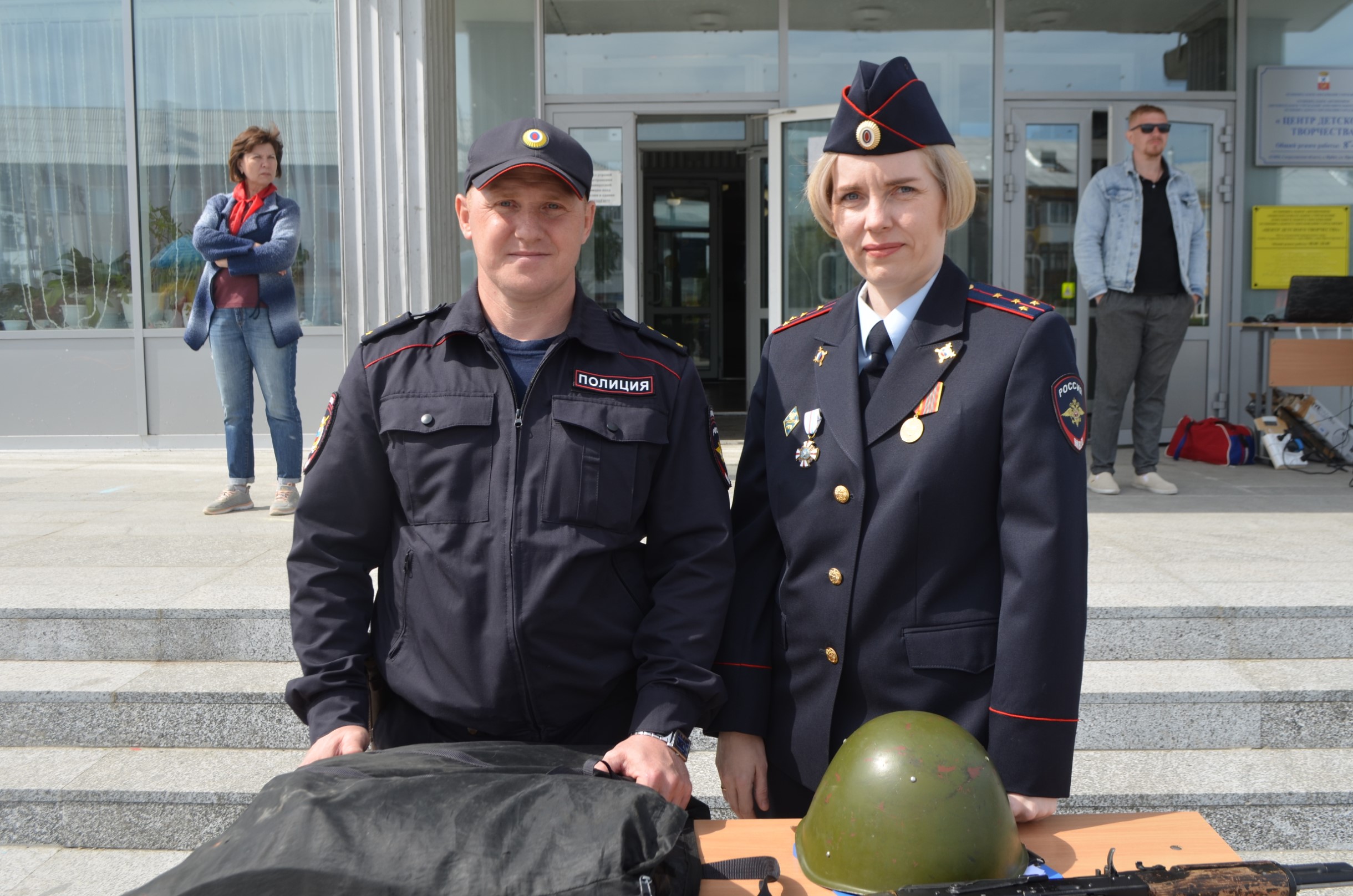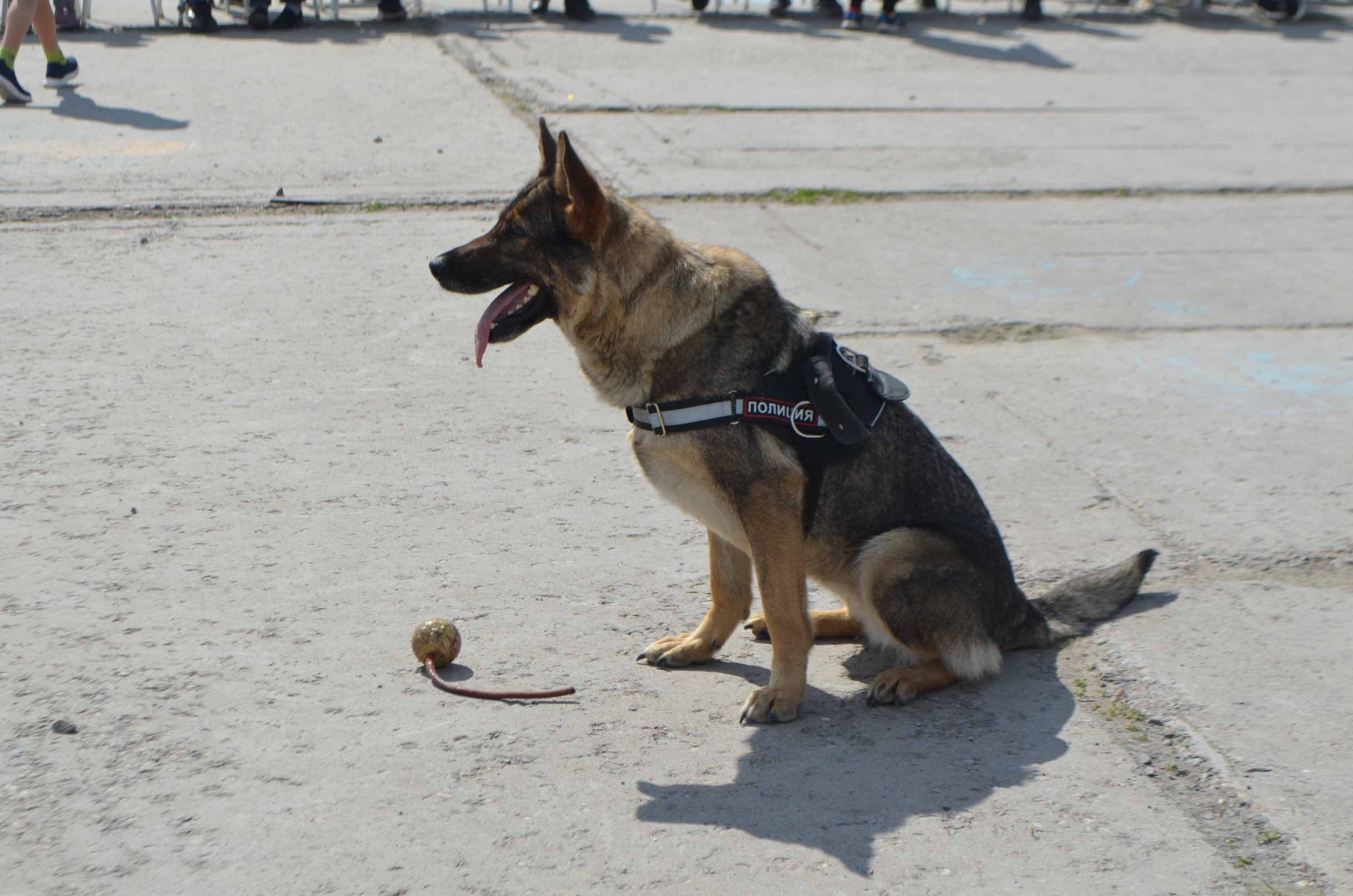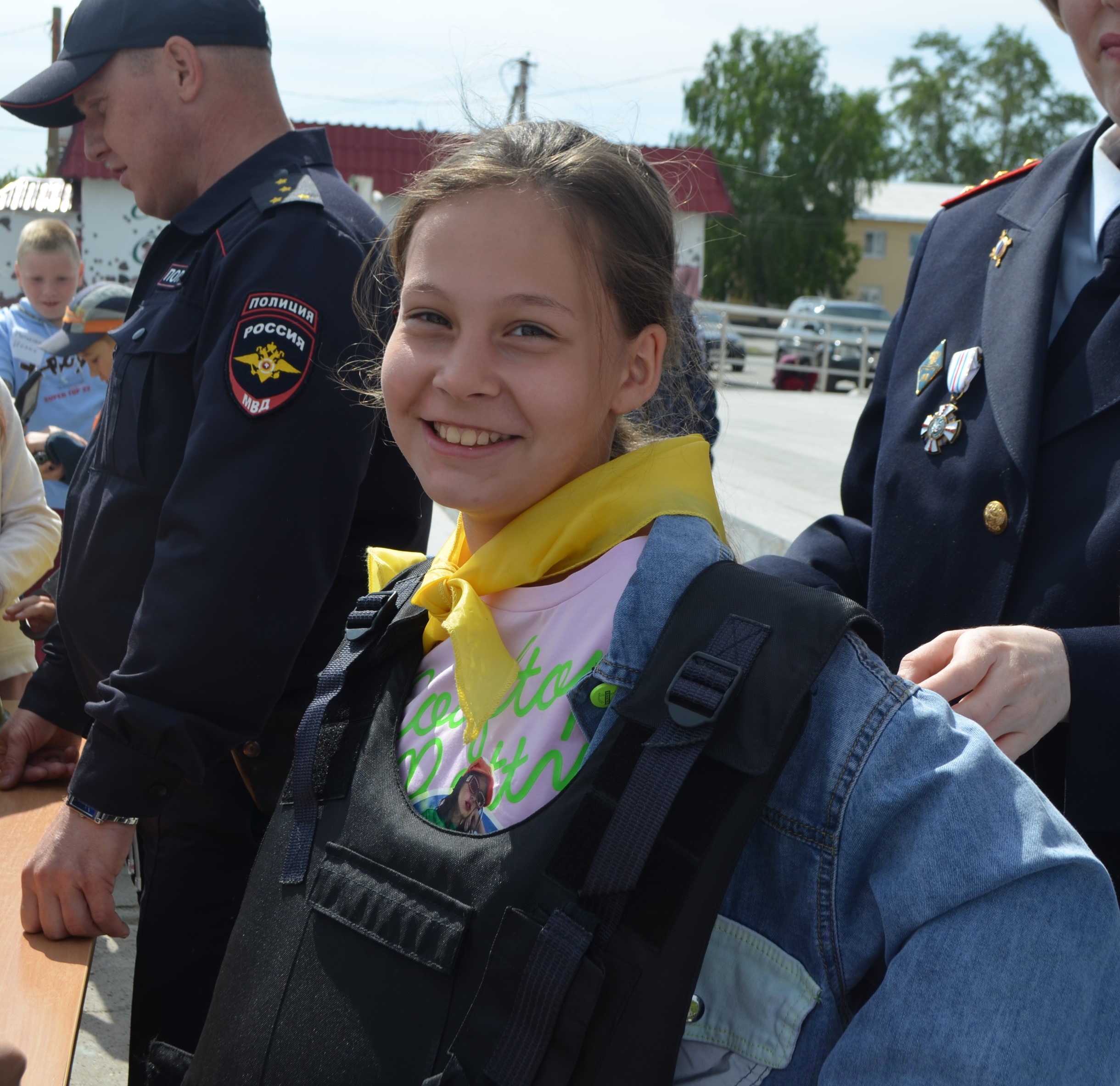 Ребятам с площадки очень интересно было побольше узнать о работе полиции. С профессией кинолога их познакомил старший инспектор-кинолог МО МВД России «Ирбитский» Сергей Фролов. Он продемонстрировал умения своей служебной собаки Черри, показал, как она находит взрывчатые вещества в машине и ловит преступников. Старший инспектор группы ООП Роман Клещев и юрисконсульт Екатерина Анисимова показали ребята рабочий инвентарь полицейских: бронежилет, каску, пистолет, металлоискатель, наручники. Детям дали возможность всё внимательно рассмотреть, примерить и почувствовать себя настоящими полицейскими. С профессией инспектора ДПС ребят познакомил старший лейтенант полиции Максим Большедворов. Он рассказал о своей работе и показал детям патрульный автомобиль. Больше всего в машине инспектора ребят привлекли сирена и рация.
