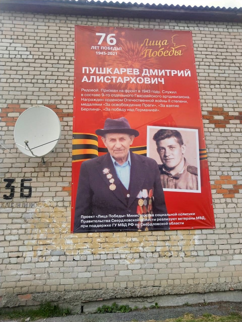 В феврале 2021 года Свердловская областная общественная организация ветеранов органов внутренних дел и внутренних войск выиграла гранд Министерства социальной политики на осуществление социально-политического проекта «Лица Победы». На местах была проведена Управлениями социальной политики, Советами ветеранов МВД отделов внутренних дел большая работа по сбору материала о боевом пути участников Великой Отечественной войны, их фотографий, сведений о наградах. Всё это было направлено специалистам по изготовлению постеров.