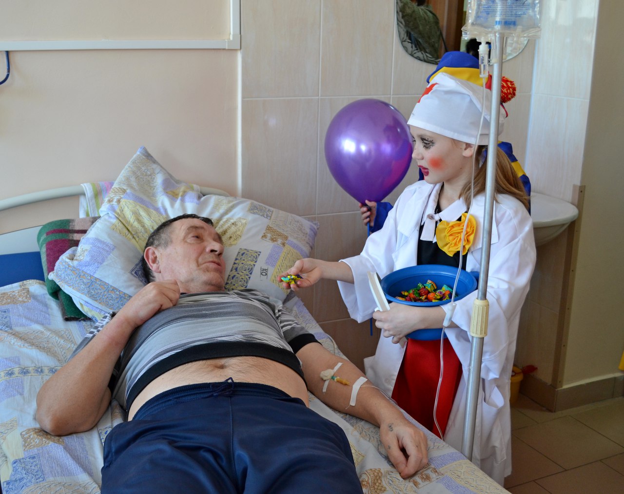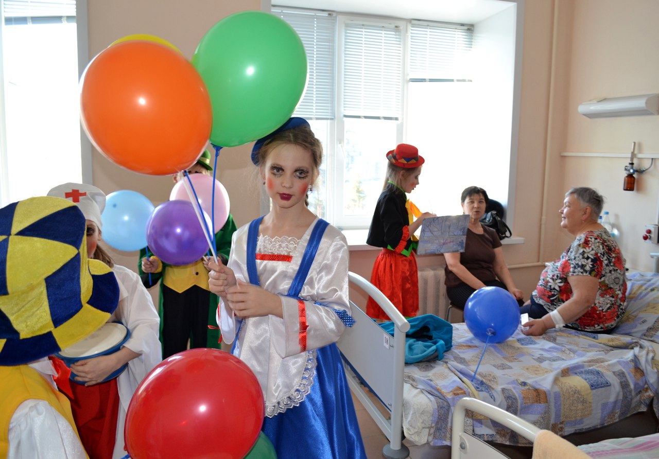 1 марта ребята второго года обучения школы-студии мим клоунады высадили десант добра в Центральную городскую больницу, где лечащимся детям и взрослым пожелали быстрейшего выздоровления и вручили подарки сделанные руками обучающихся в Центре Детского Творчества "Кристалл". Десант добра - это добрая традиция школы клоунады (уже четвертая по счету), на которой юные клоунята учатся быть добрее и милосерднее.