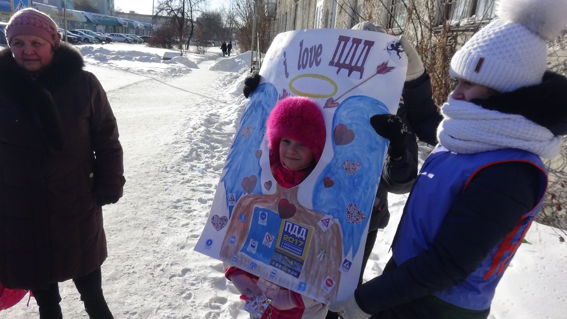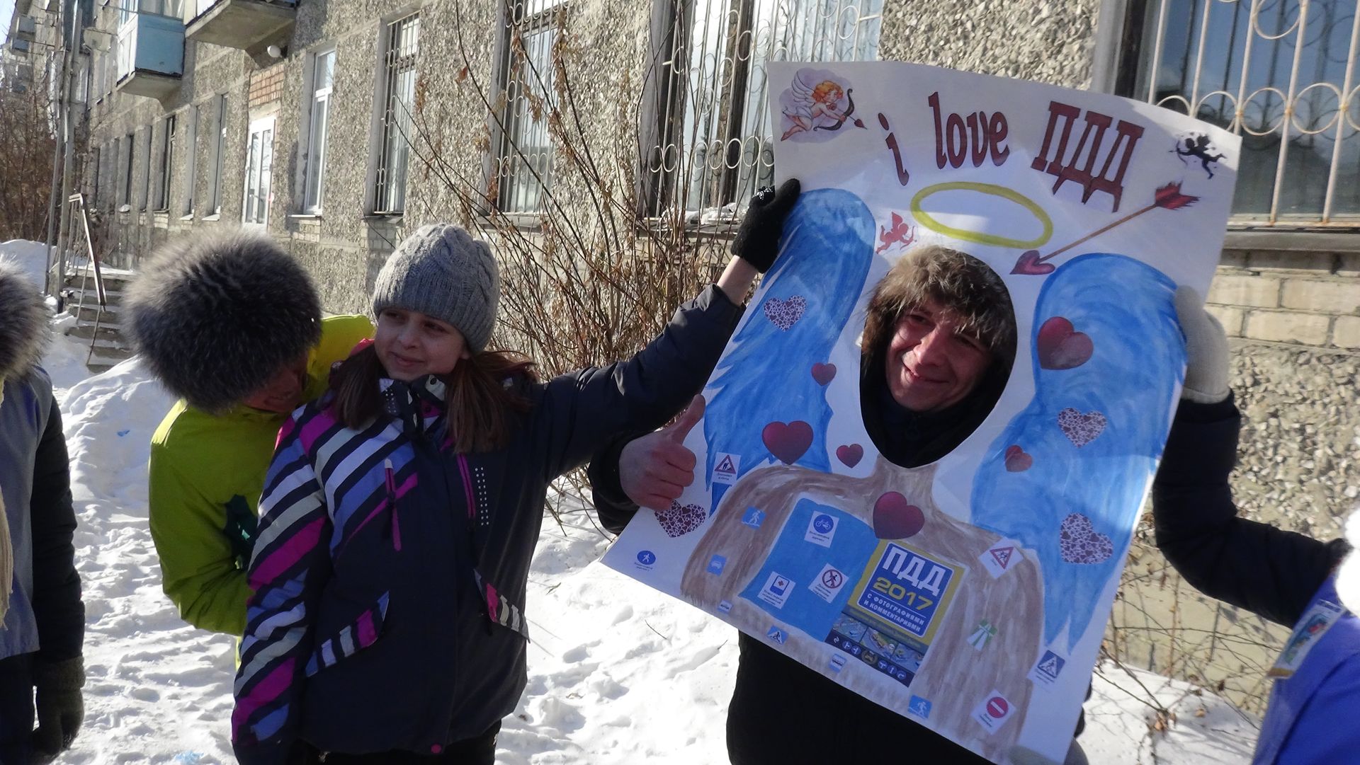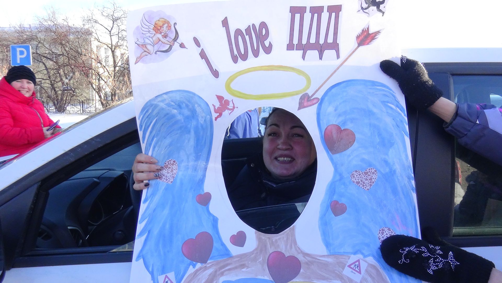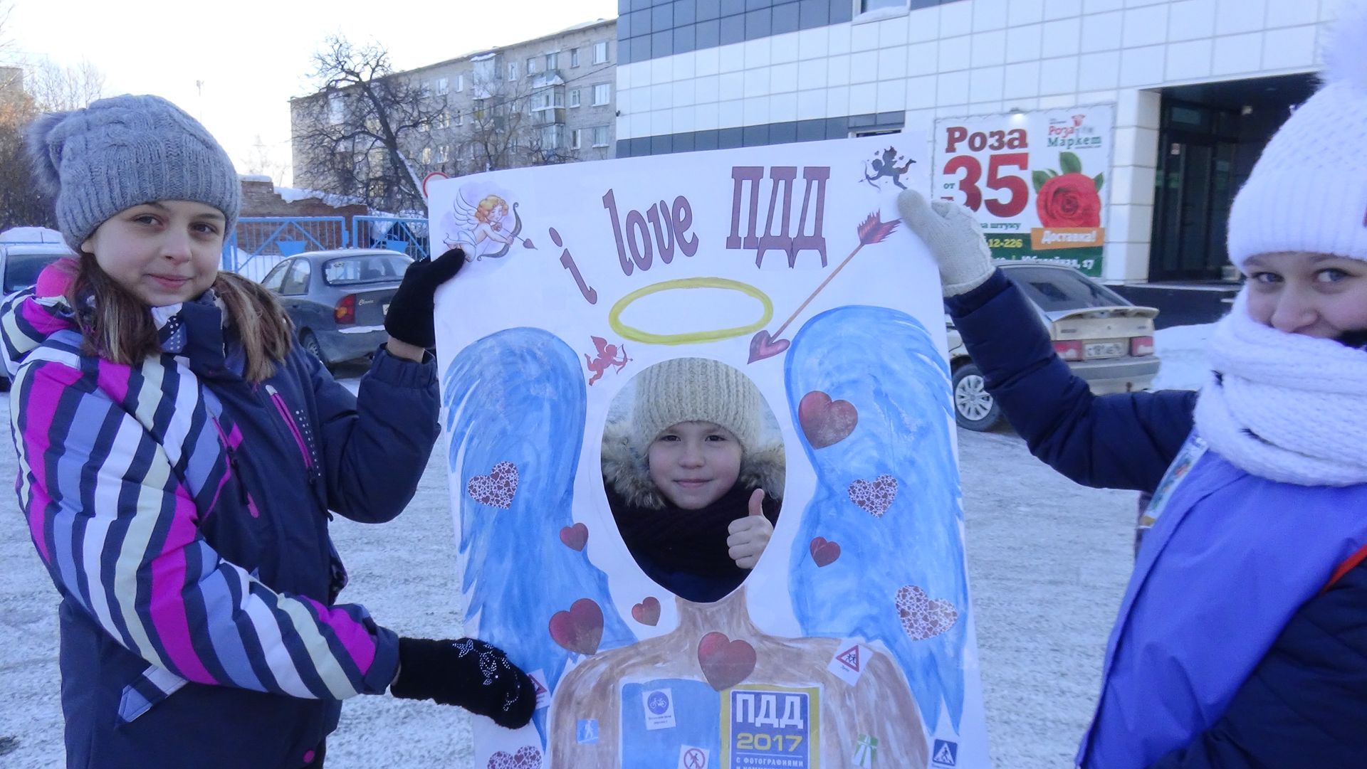 В качестве подарка участники акции с улыбками и в приподнятом настроении получали памятки, воздушные шары и фотографировались в специально изготовленной рамке «Я люблю ПДД».