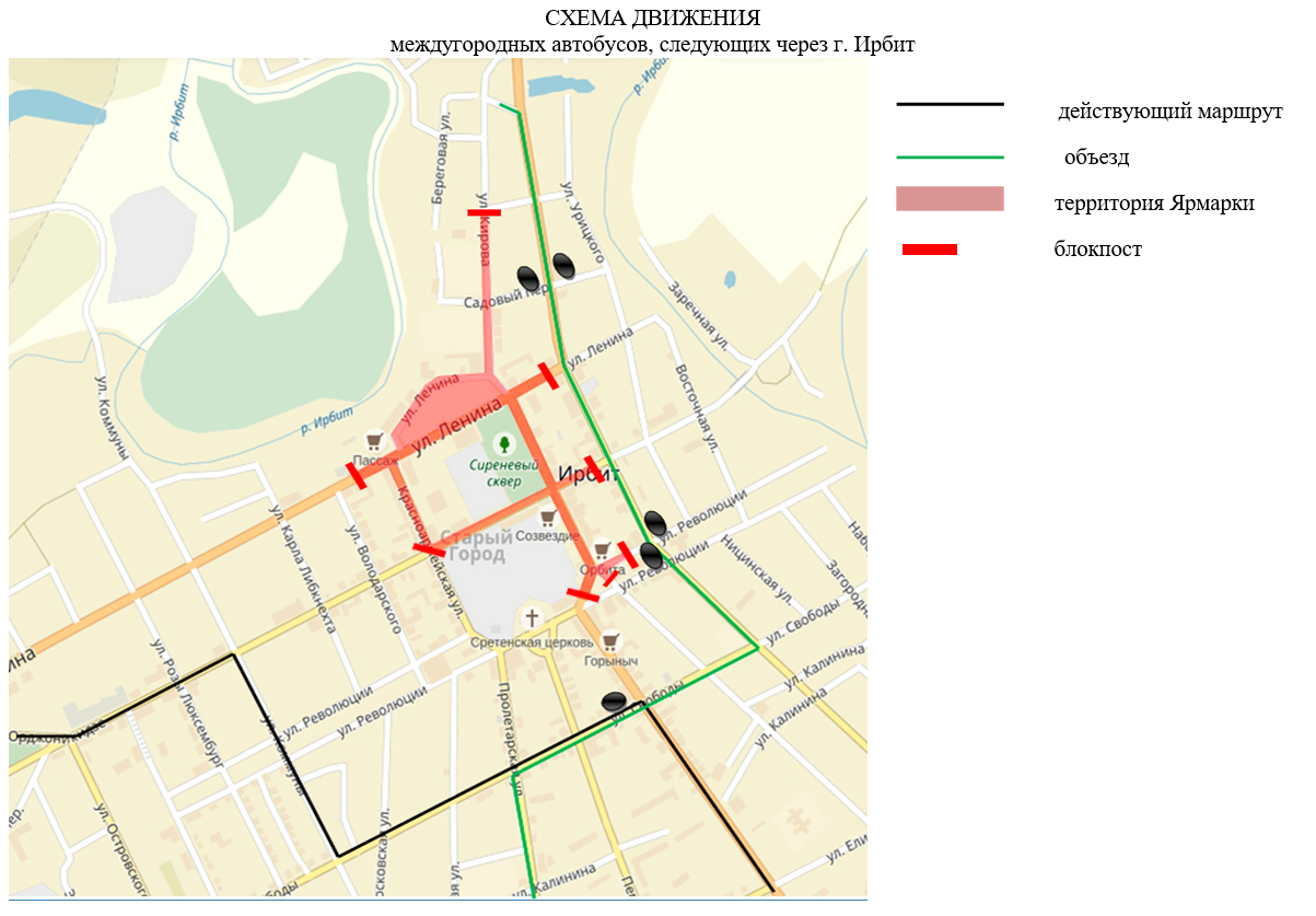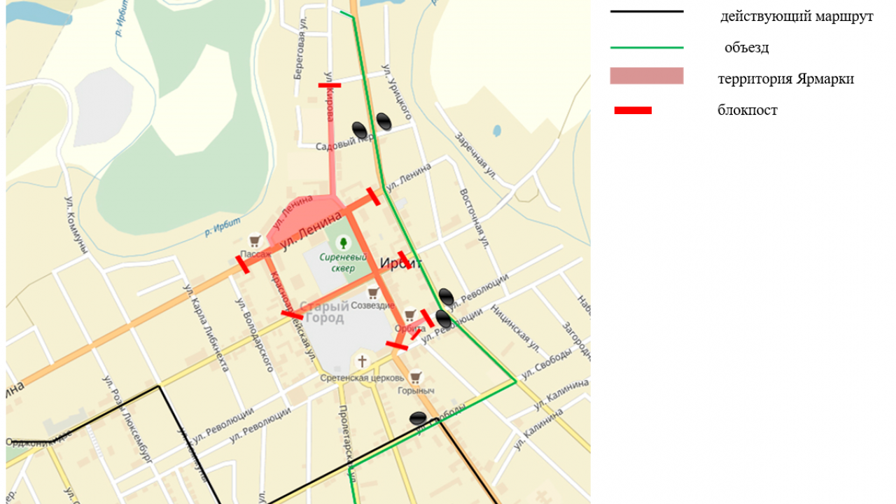 В связи провдения Ирбитской ярмарки с 11 по 14 августа 2016 года будет перекрыто автомобильное движение на территории проведения ярмарки (площадь им. Ленина) и прилегающих улицах.