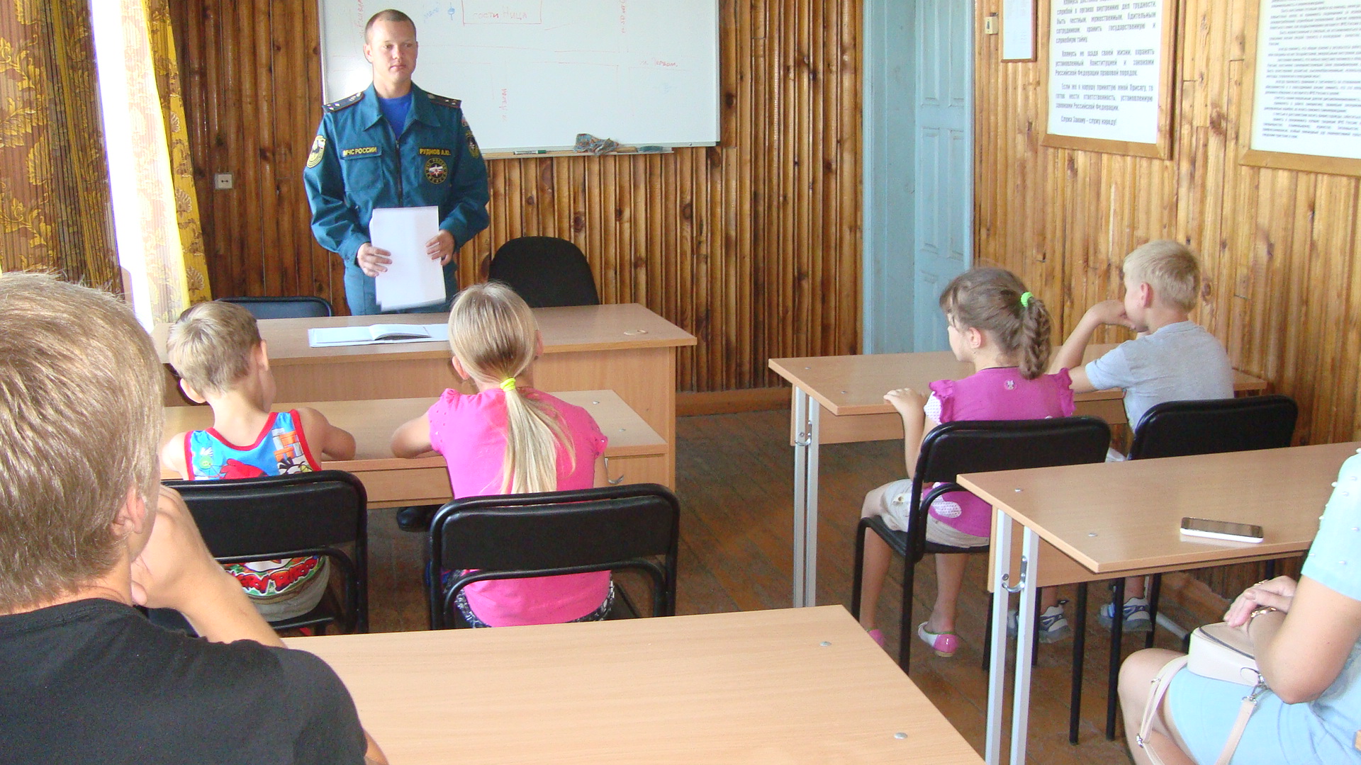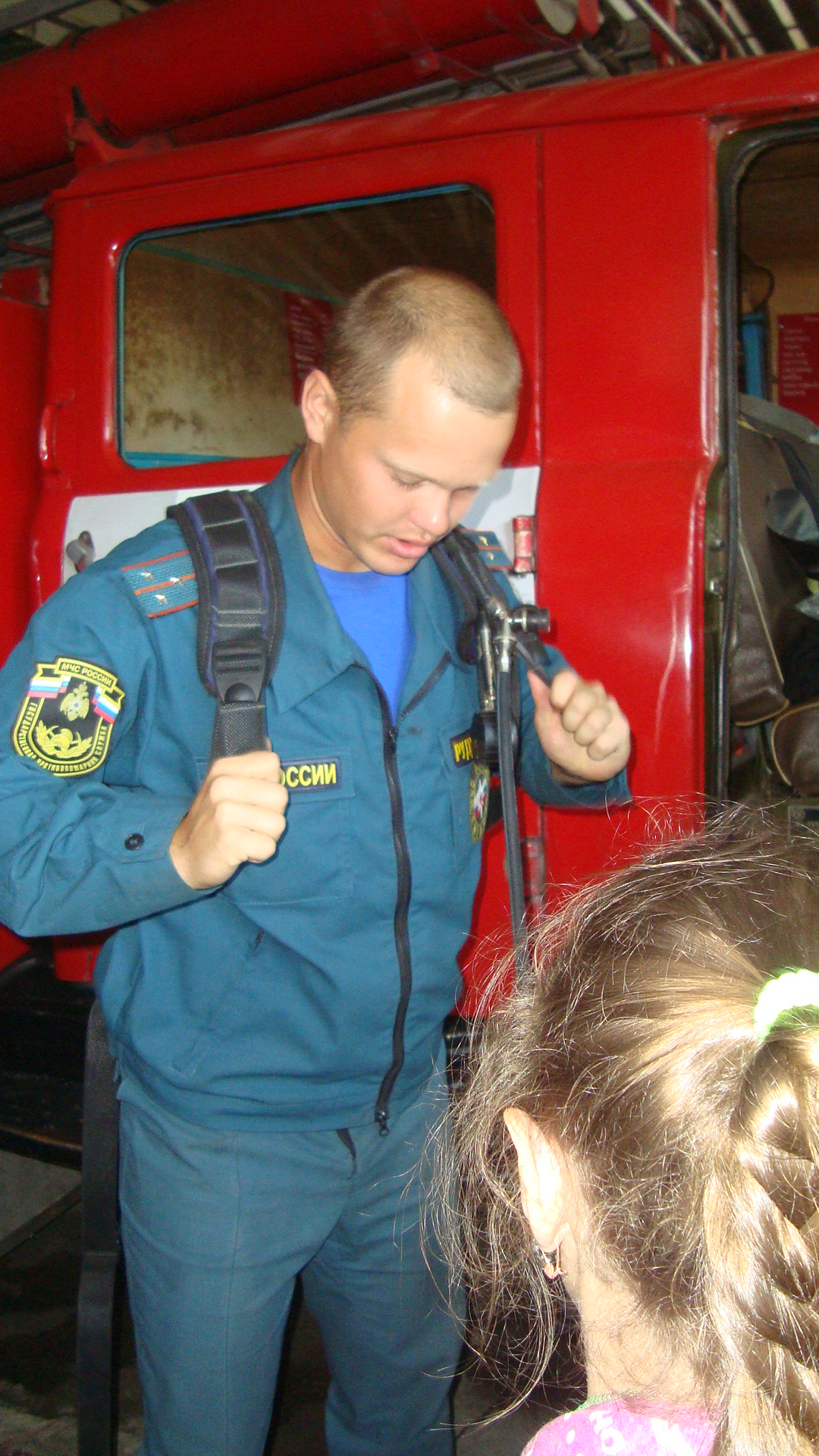 Для начала им было предложено прослушать лекцию о случаях гибели и травматизма детей на пожаре и пожарах, произошедших по вине детей, о соблюдении требований пожарной безопасности и о том, как правильно вызвать пожарную охрану и другие оперативные службы. После лекции детей и двух педагогов проводили на экскурсию по территории пожарной части. Проводил экскурсию начальник караула старший лейтенант внутренней службы Руднов Андрей Юрьевич, он рассказал детям об истории Ирбитской пожарной охраны, о том, как проходит рабочая смена в пожарной охране, так же было наглядно продемонстрировано несколько нормативов по пожарно-строевой подготовке: пожарные одевали боевую одежду, показали, как вяжется двойная спасательная петля на пострадавшего. Больше всего впечатлений и море эмоций ребята получили в тот момент, когда им разрешили попробовать одеть на себя боевую одежду и снаряжение пожарного.