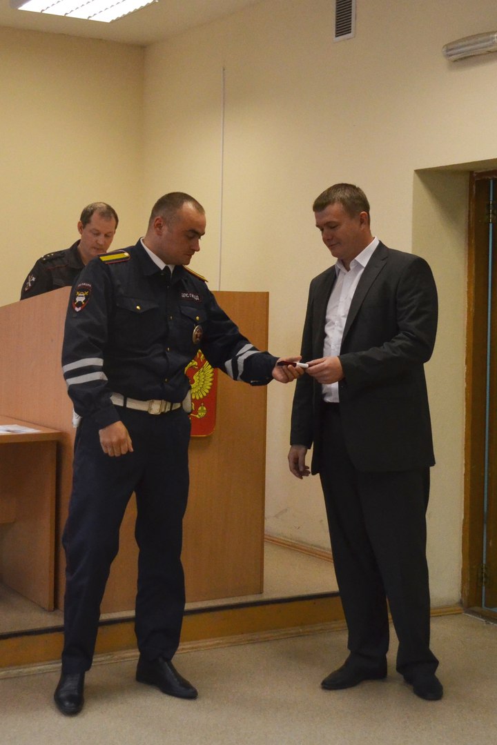 В канун профессионального праздника также был зачитан приказ о присвоении очередного звания прапорщика полиции двум инспекторам отдельной роты ДПС Валерию Фатееву и Михаилу Шукшину.