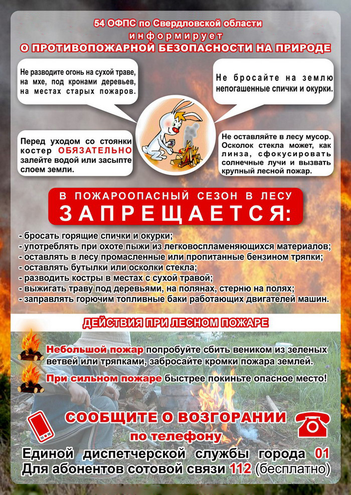 В связи со складывающейся пожароопасной обстановкой ГУ МЧС по Свердловской области просит население ограничить выходы в лесную зону и разведение костров, не бросать непотушенные окурки и спички, не организовывать палы сухой травы.