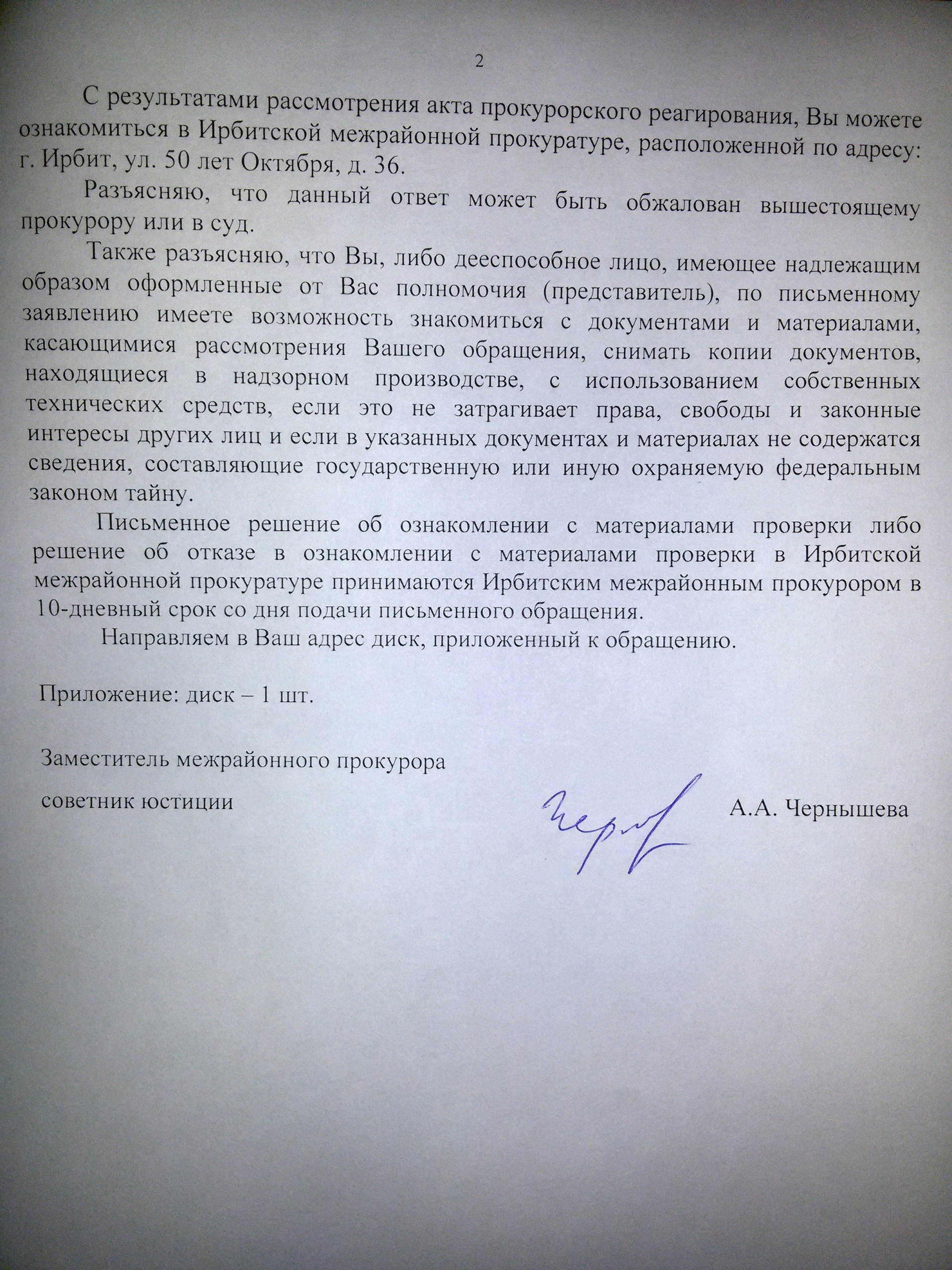 У Главы МО г. Ирбит Г.А. Агафонова есть один месяц для проведения благоустройства территории кладбища "Русское". В случае невыполнения законных требований прокурора, глава МО г. Ирбит будет в очередной раз привлечен к административной ответственности по ст. 17.7. КоАП РФ "Невыполнение законных требований прокурора, следователя, дознавателя или должностного лица, осуществляющего производство по делу об административном правонарушении.