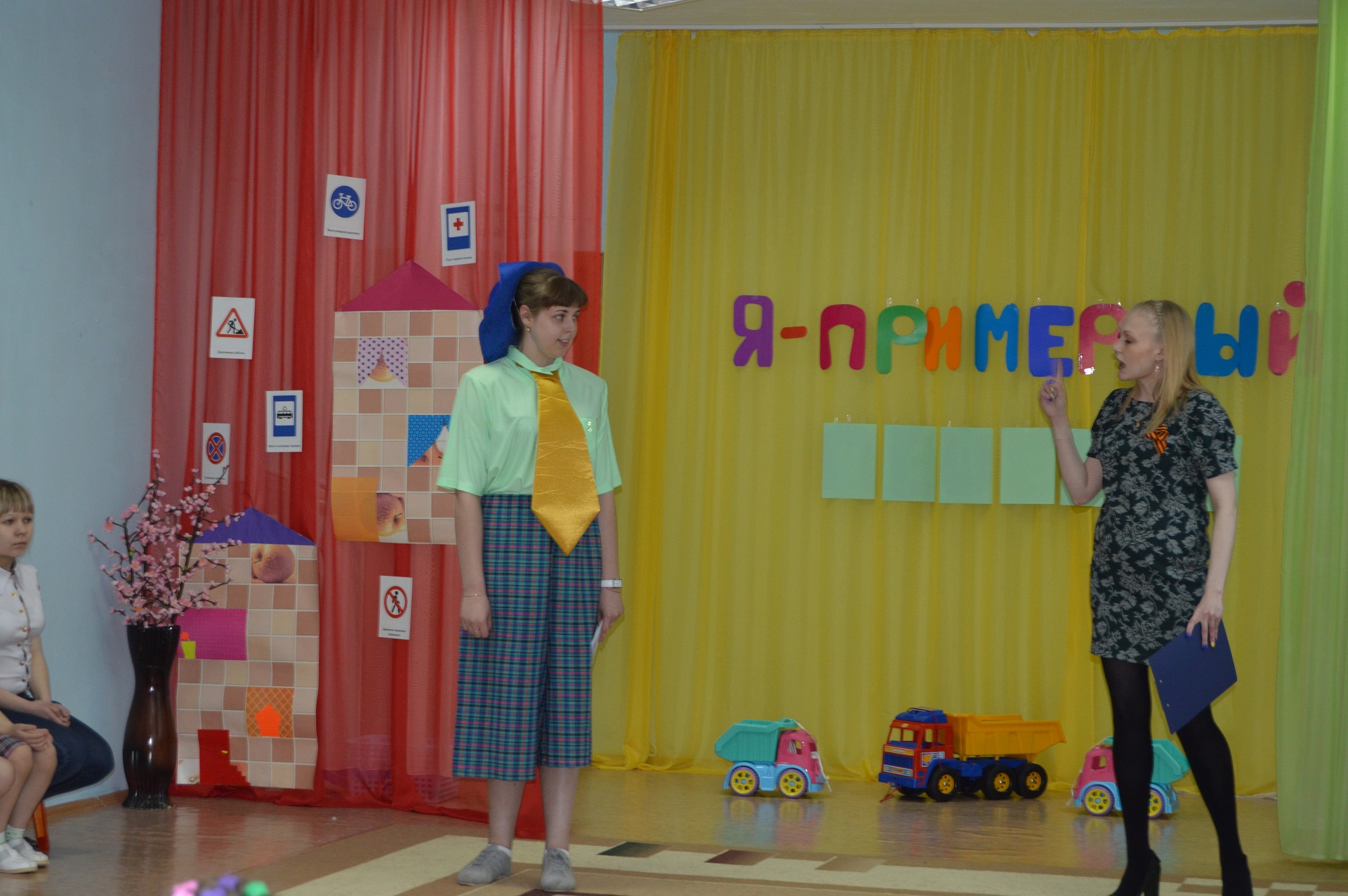 Участники отряда ЮИД «Светофорчик», дети подготовительной группы напомнили зрителям о соблюдении правил дорожного движения. Проверили знание дорожных знаков и правила поведения на улицах города. Вместе с Незнайкой дети средней группы «Почемучки» и старшей группы «Радуга» смогли отгадать все загадки, выполнить игровые задания, и в результате отыскать потерявшееся слово «ПЕШЕХОД».