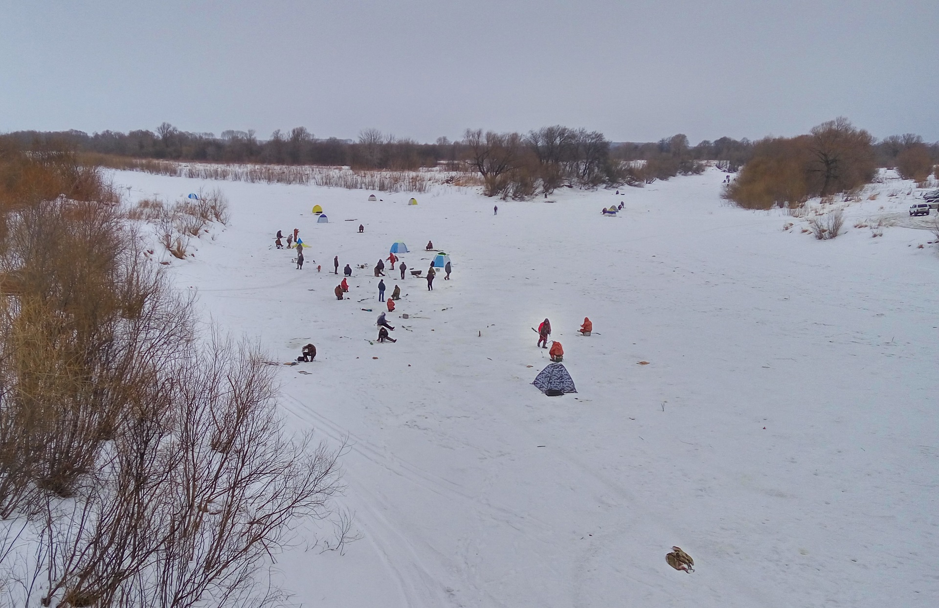 В силу комфортной температуры воздуха рыбаков на реке было много – более 30 человек. Некоторые чтобы не замерзнуть, установили палатки. Опасность в этом случае представляют используемые для обогрева горелки и лампы. Поэтому спасатели напомнили о соблюдении правил пожарной безопасности при использовании отопительных приборов.