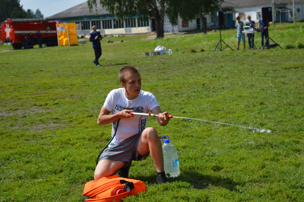По завершению всех этапов соревнований, судейская бригада удалилась на подведение итогов, а на поле появился пожарный автомобиль ПЧ 16/8 с пожарными, которые продемонстрировали свои умения в пожарном деле. Сотрудники провели показательное выступление по боевому развертыванию от пожарной автоцистерны на две рабочих линии со стволами «Б». Счастью участников мероприятия и зрителей не было предела, яркие, прохладные брызги чистейшей воды орошали разогретые на солнце тела отдыхающих детей. Все без исключения старались попасть под струи живительной влаги. Такие показательные выступления надолго останутся в памяти ребят.