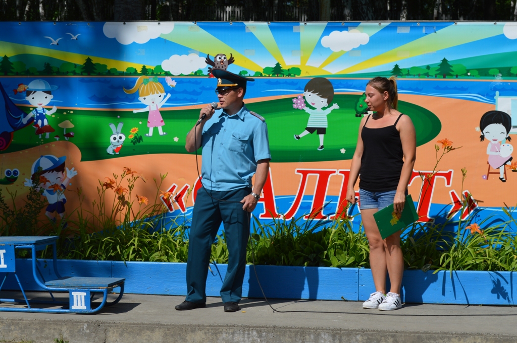 На открытии мероприятия, отдыхающих детей приветствовал начальник 60 ПСЧ 54 ОФПС Александр Григорьевич Сутягин и инструктор профилактики ПЧ 16/8 Инна Попова. После линейки от каждого отряда было вызвано по 10 человек, после чего участников распределили в сборные команды. Участники придумали названия своим коллективам и это были команды: «Н2О», «Пожарные», «ДЮП», «МЧС» и «Огонь», в этот раз названия всех команд соответствовали тематике мероприятия.
