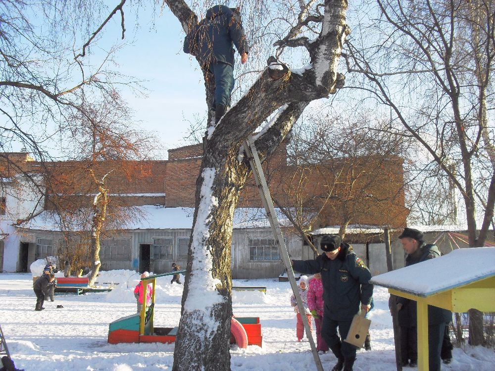 Пока пожарные устанавливали скворечник, детишки, вышедшие на прогулку, с интересом глазели на сотрудников в форме и наперебой задавали вопросы. Потом ребята показали, как сами поддерживают птиц в зимний период, подкармливая их в развешанных кормушках. Попутно с установкой скворечника инженер 60 ПЧ Ольга Музычкина расспросила детей, какие они уже знают правила пожарной безопасности и напомнила об опасности игр с огнем.