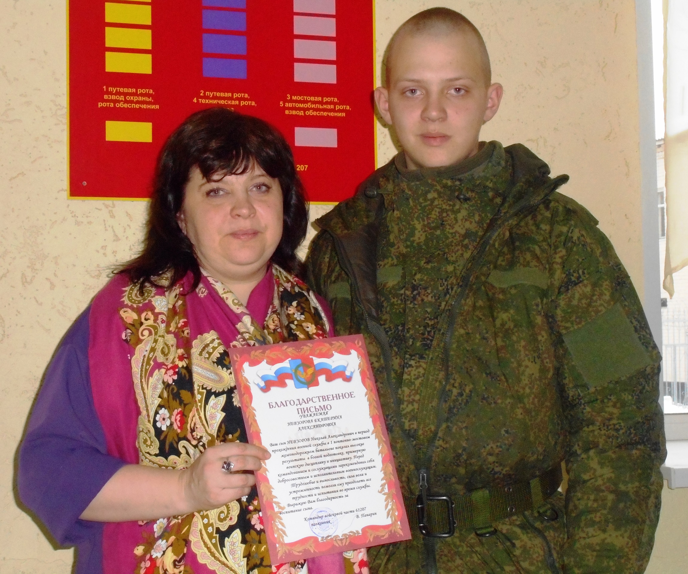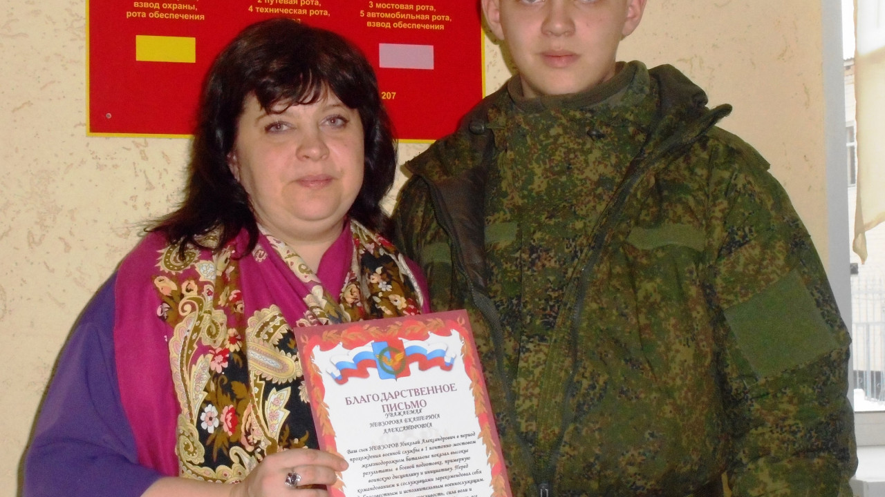 Дел в том, что ее сын, Николай, в этом году был призван на срочную службу и в настоящее время распределен в одну из воинских частей Железнодорожных войск в г. Екатеринбурге.