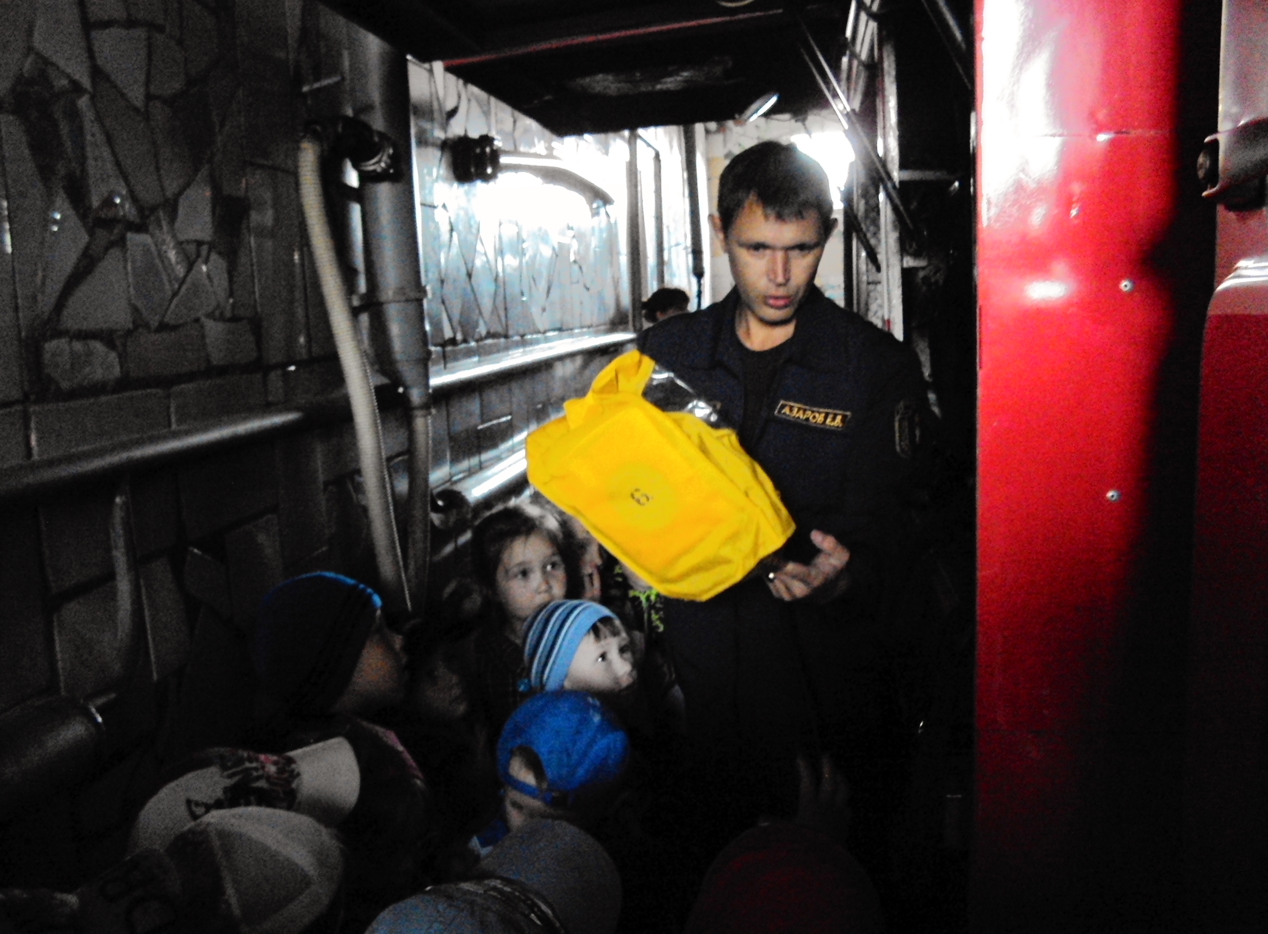 Ребята заглянули в комнату отдыха и столовую пожарных, побывали в диспетчерской, увидели все средства связи, которые применяют современные службы спасения. В конце экскурсии начальник караула, предложил ребятам посидеть в пожарной машине, а в ответ грянуло дружное «Ура!». Уходя из пожарной части, многие мальчишки твёрдо решили, что обязательно станут пожарными.