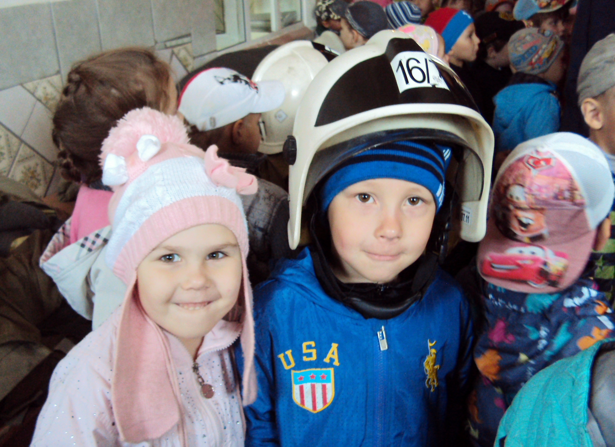 С любопытством дети рассматривали предметы боевой одежды, пожарно-спасательный инвентарь, всем желающим дали примерить шлем-каску пожарного и даже девчонки не отказались от такой примерки. Дошколята засыпали сотрудников пожарной части разными вопросами, и каждый получил ответ на свой вопрос.