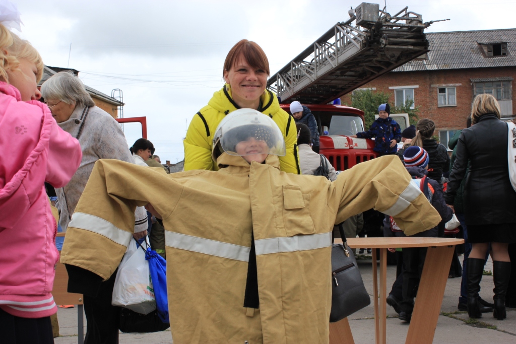 Много первоклассников пыталось примерять на себя боевую одежду пожарного, после чего, некоторые из них, не скрывая восхищения, говорили: «Хочу быть пожарным!».