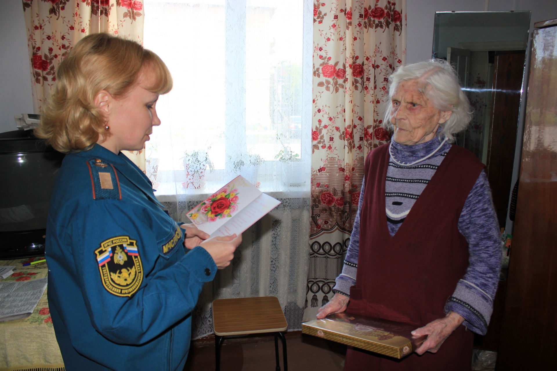 Накануне сотрудники 60-й пожарной части навестили ветерана пожарной охраны участницу Великой Отечественной войны Болотову Клавдию Матвеевну и поздравили её с 92-летием. Несмотря на преклонный возраст Клавдия Матвеевна старается делать все домашние хозяйственные работы сама – здоровье позволяет. Но от помощи не отказалась. Во время визита сотрудник отдела кадров Ольга Семакина разъяснила все интересующие вопросы по социальному и пенсионному обеспечению, оформлению социальных пособий и выплат, а также начислению коммунальных платежей.