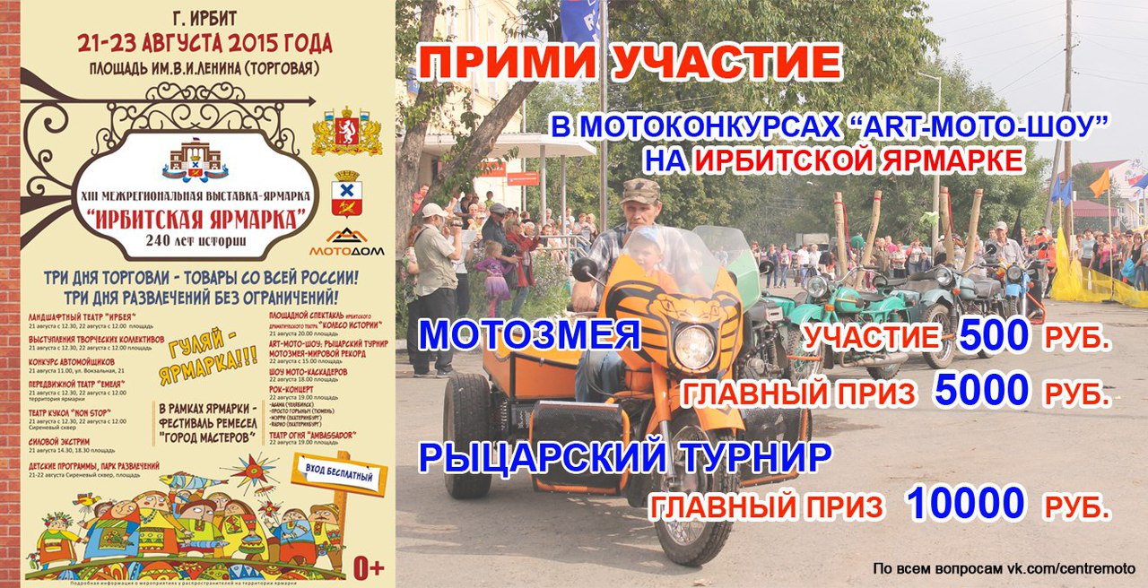 Для участия в мото-конкурсах вам необходимо оставить заявку - в личку администратору группы Евгения Горовая http://vk.com/id31135750 либо по телефону: (34355) 6-27-60, либо по эл.почте turizm-irbit@yandex.ru