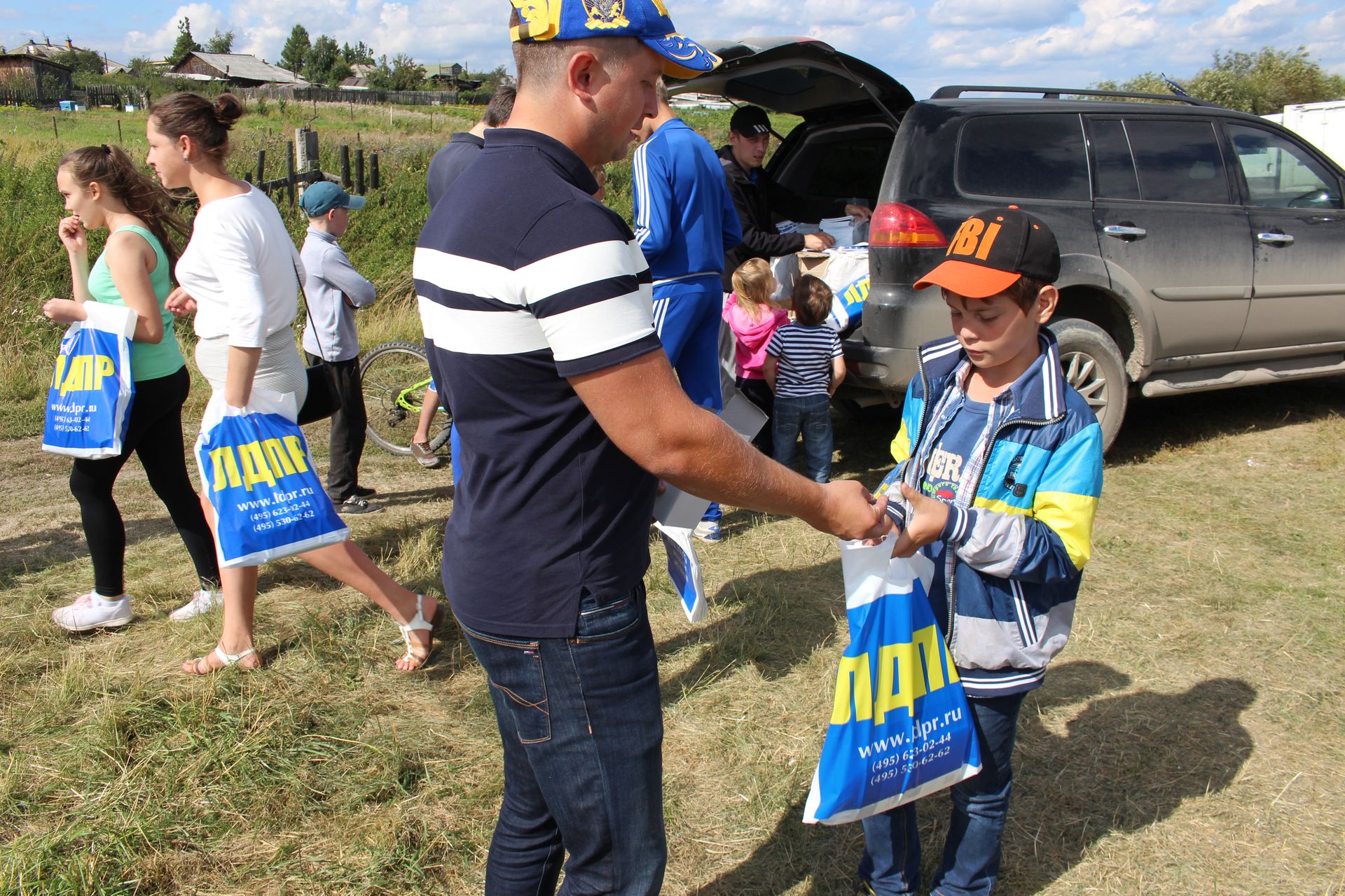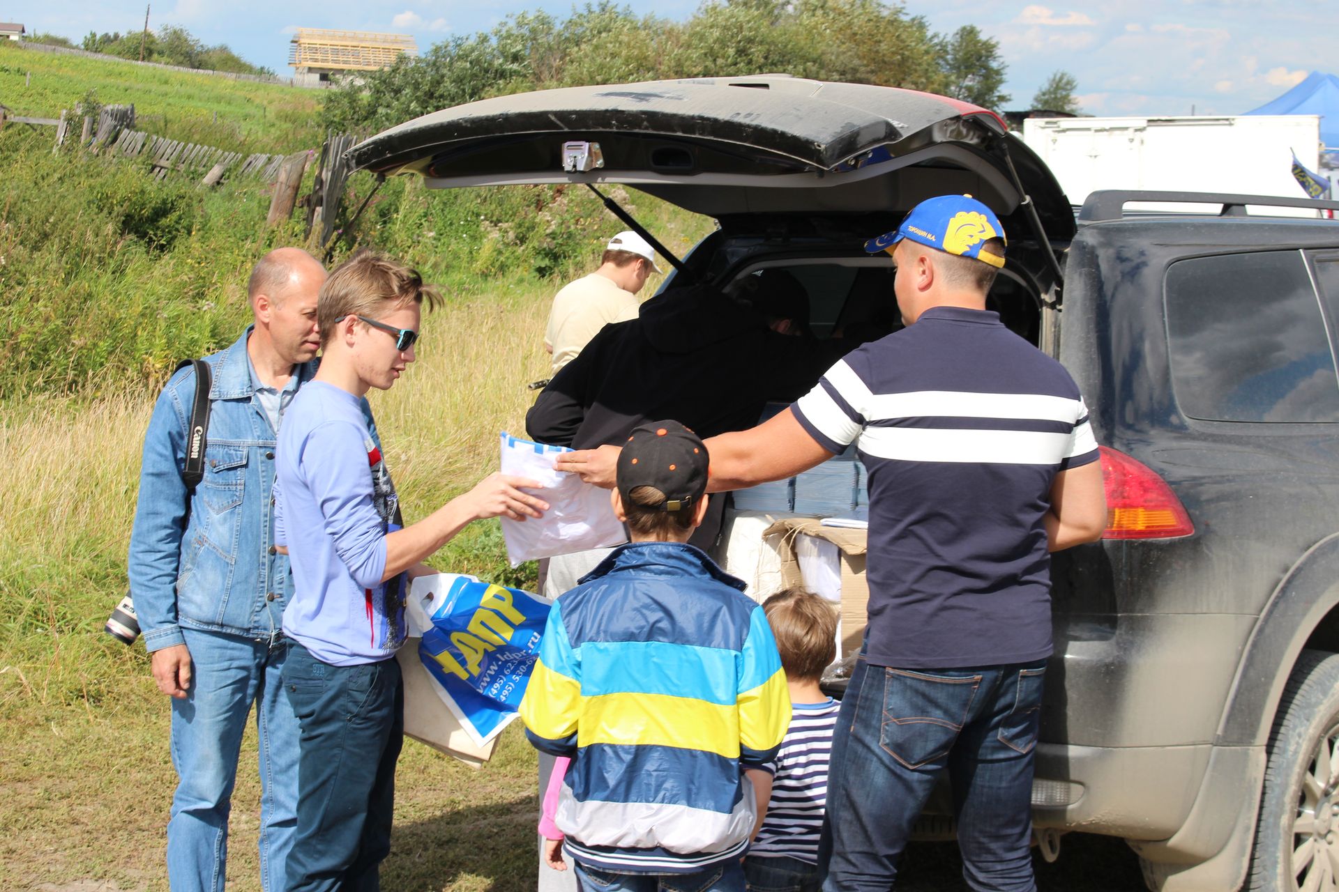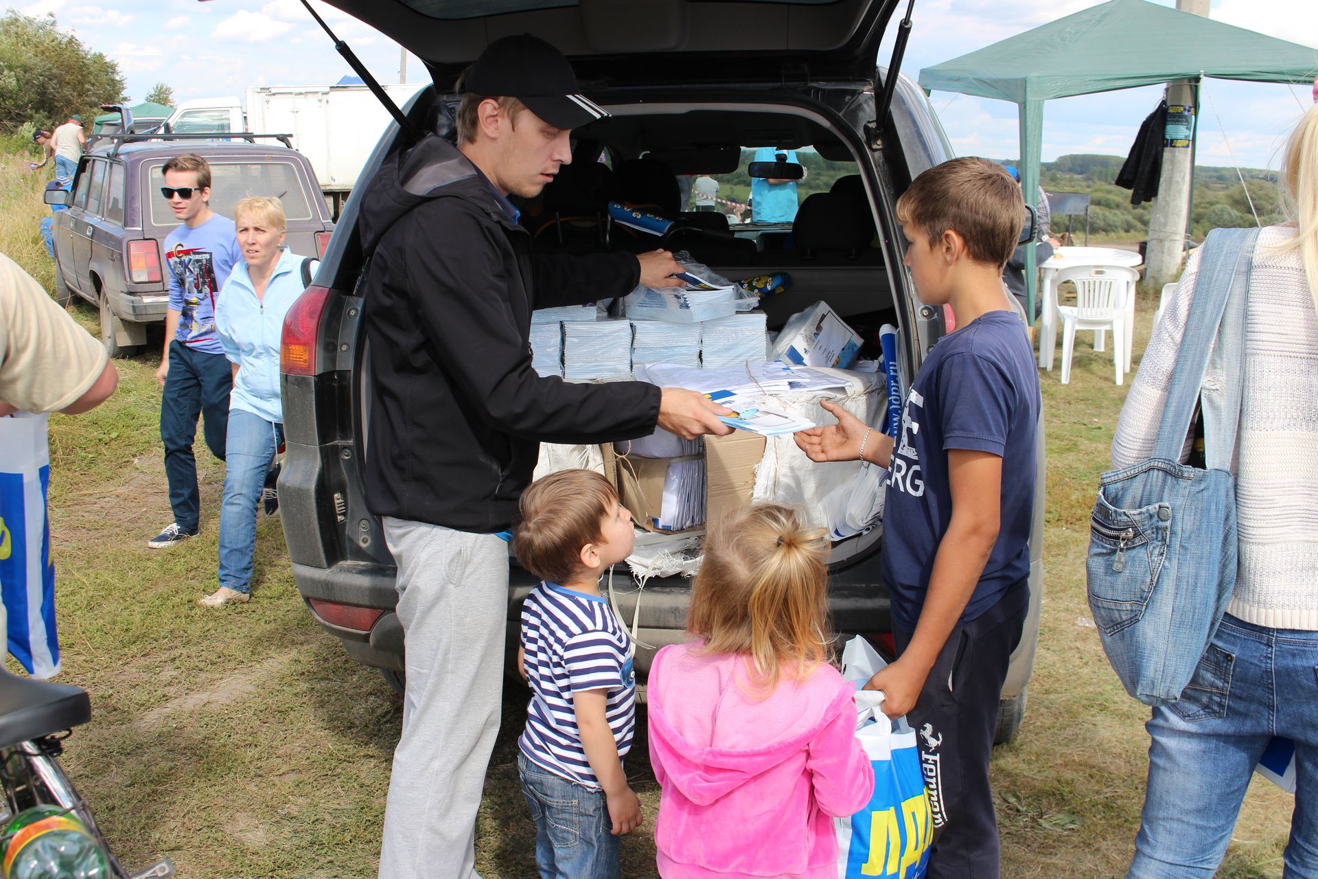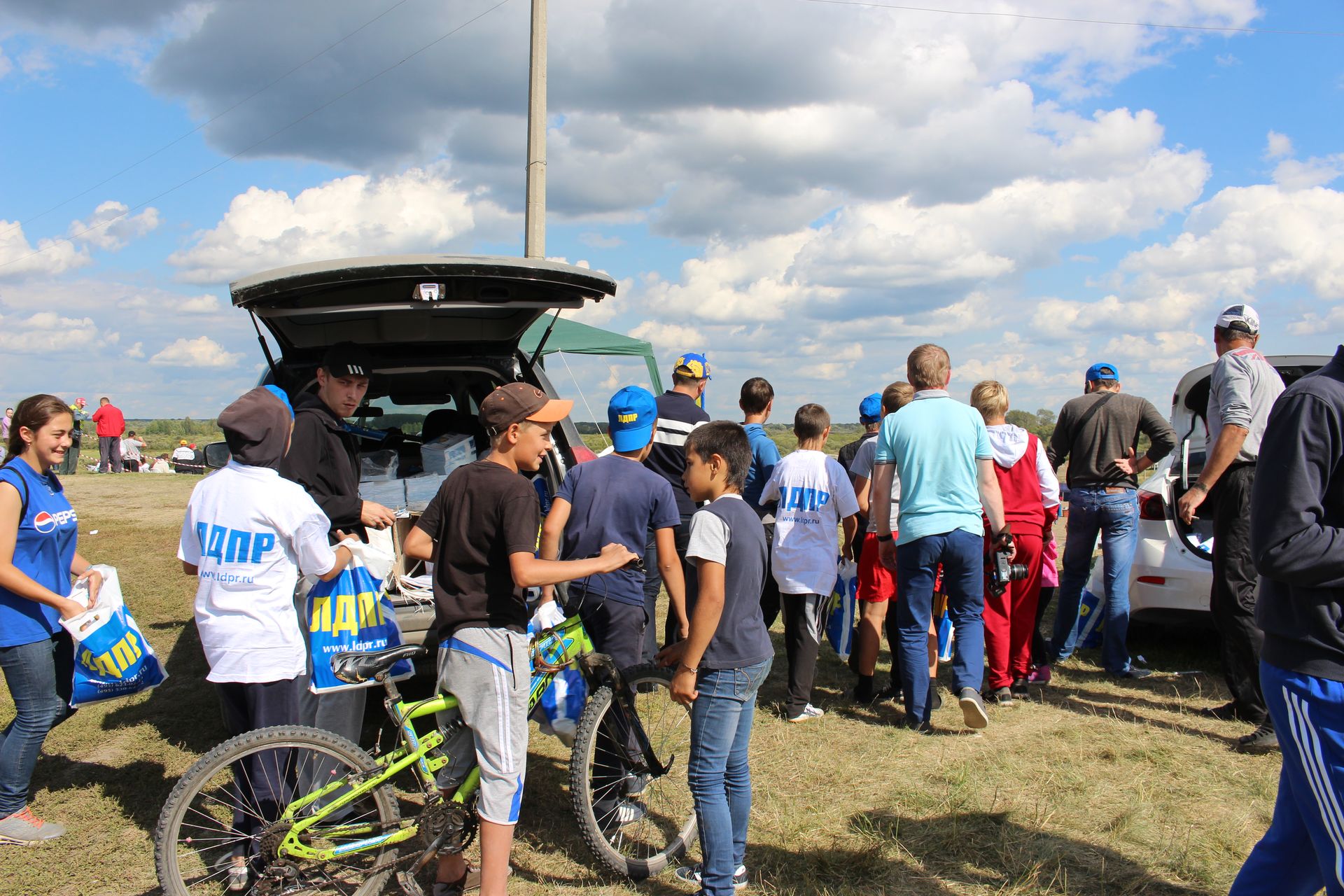 В перерывах между заездами Игорь Торощин вместе со своими помощниками раздавал всем желающим школьные принадлежности (тетради, дневники, ручки), а также кепки и футболки.
