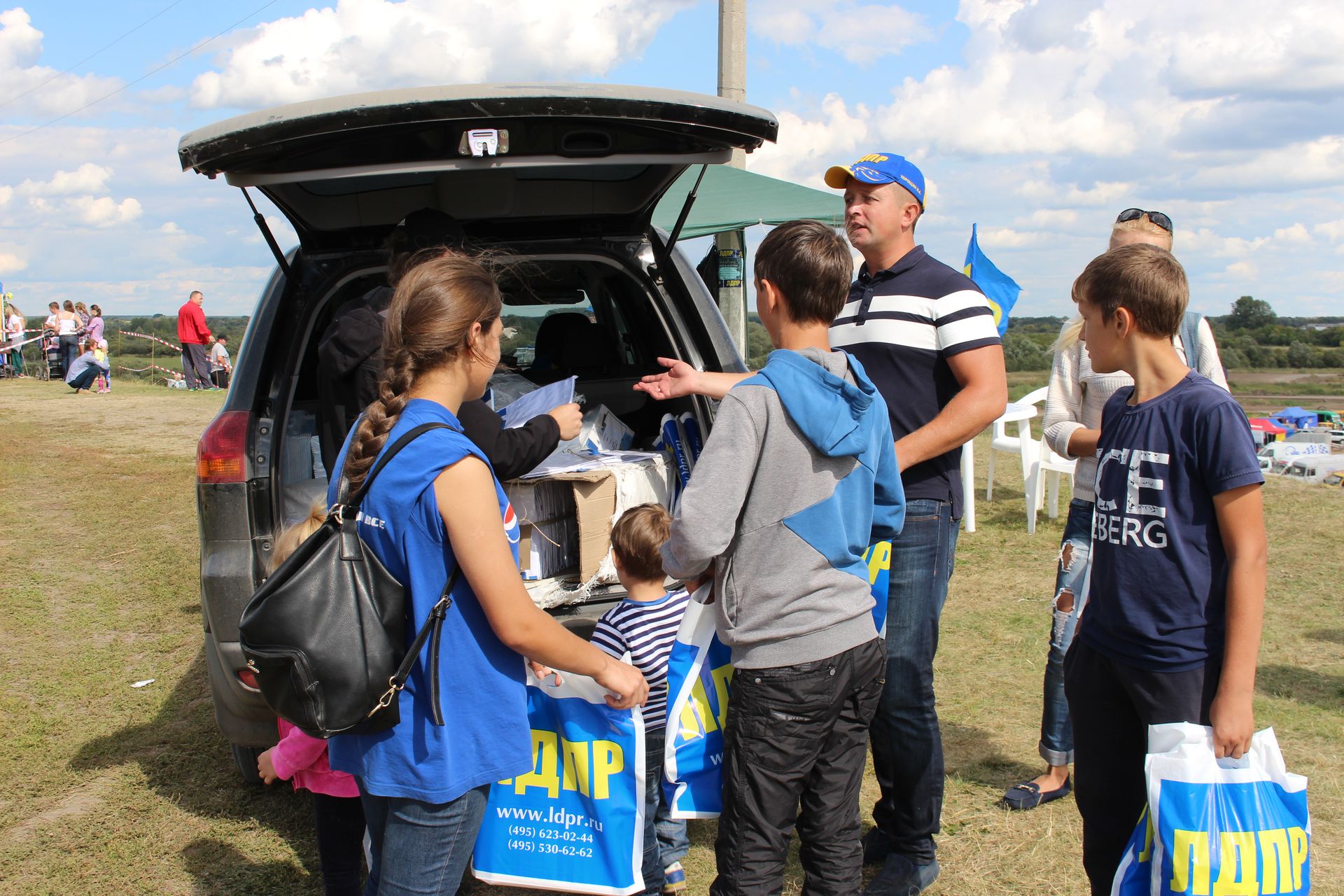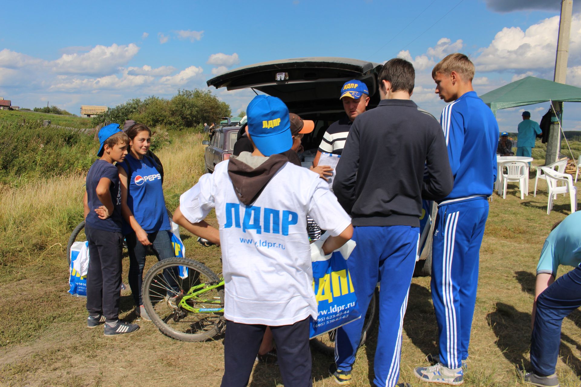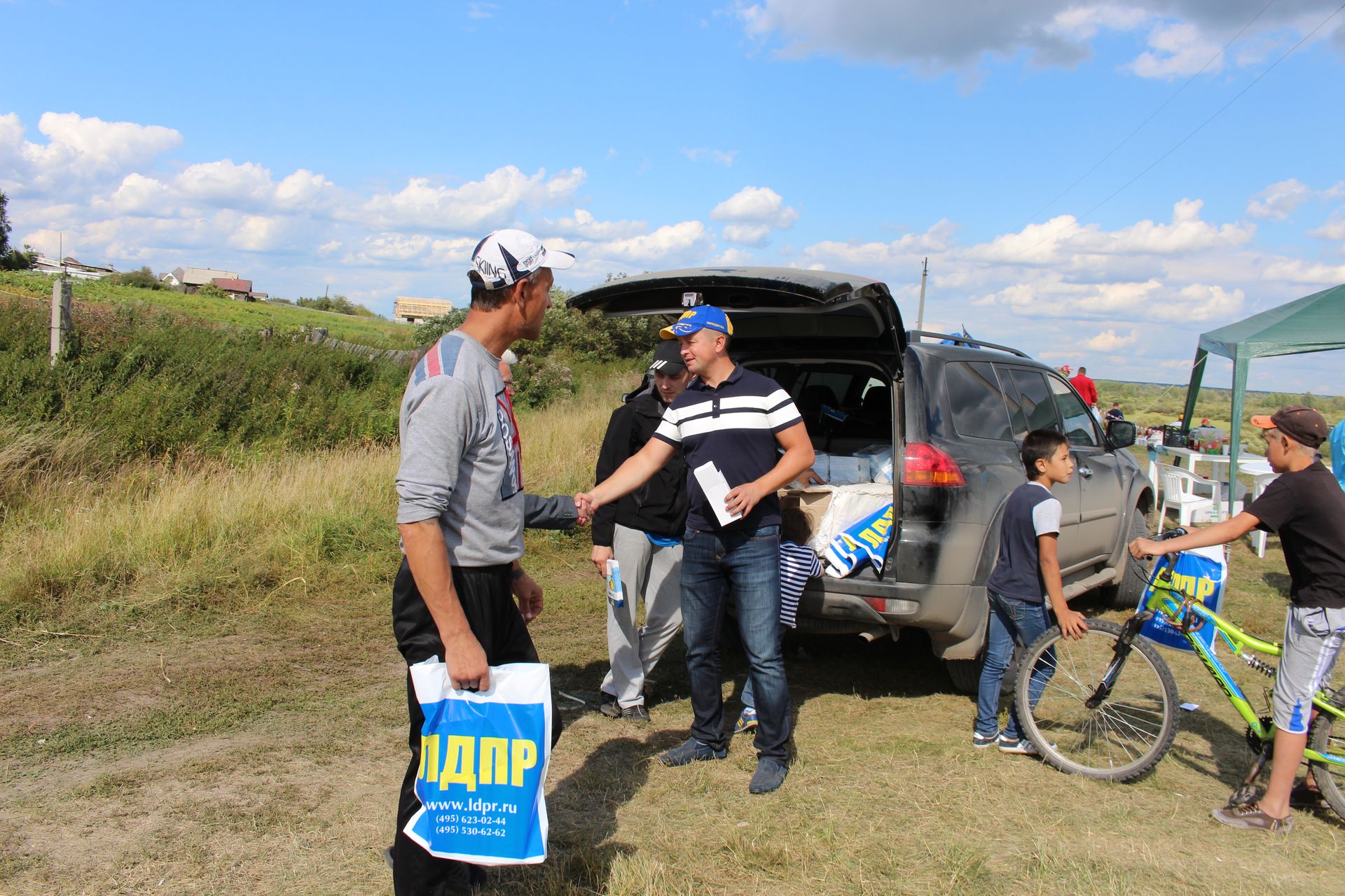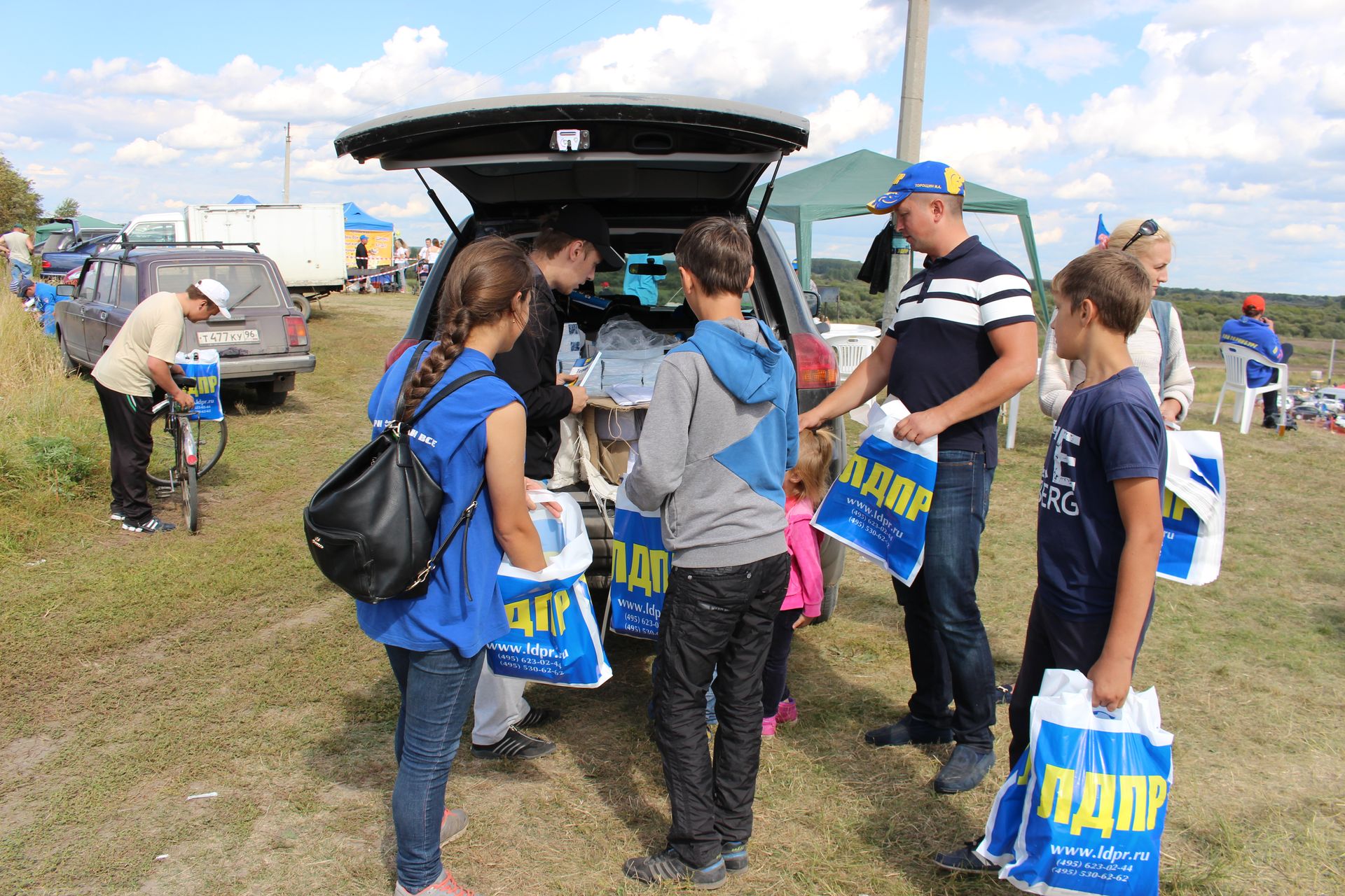 В перерывах между заездами Игорь Торощин вместе со своими помощниками раздавал всем желающим школьные принадлежности (тетради, дневники, ручки), а также кепки и футболки.