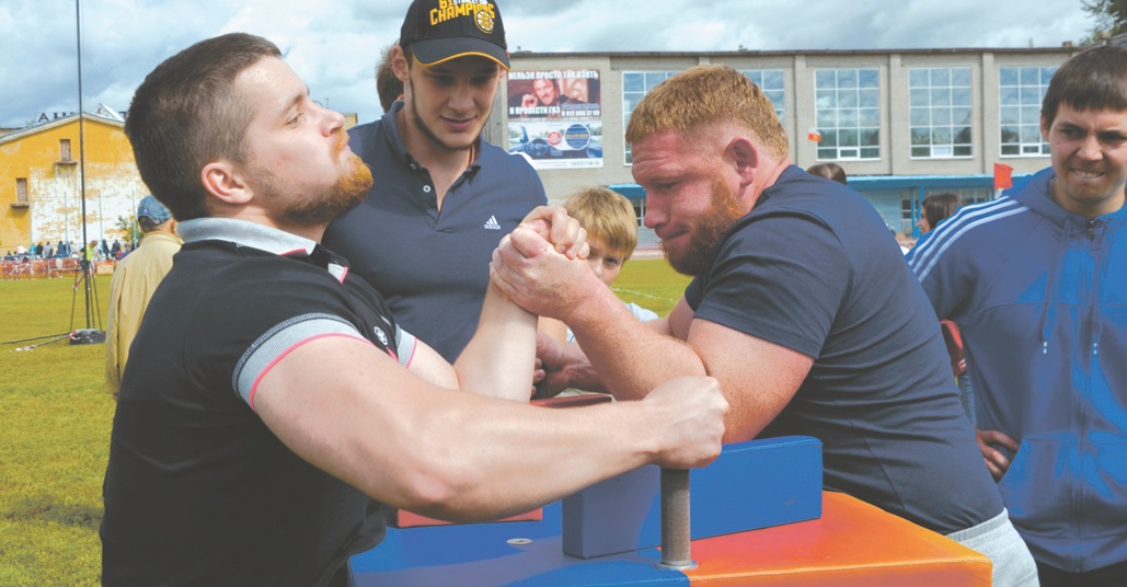 Настоящая мужская борьба развернулась на площадке армрестлинга. Участники настолько отдавались ей, что судье приходилось стягивать пальцы соперников лентой. Но и это не помогало, тогда победитель определялся секундой удержания. Рыжебородый Сергей Махнев в абсолютном весе (свыше 85 кг) не оставил никому шансов.