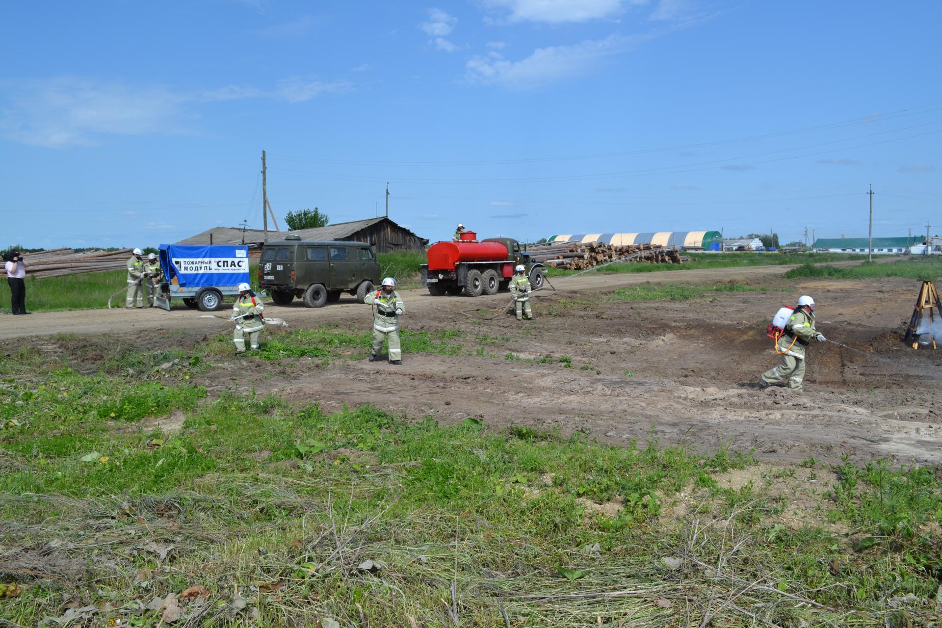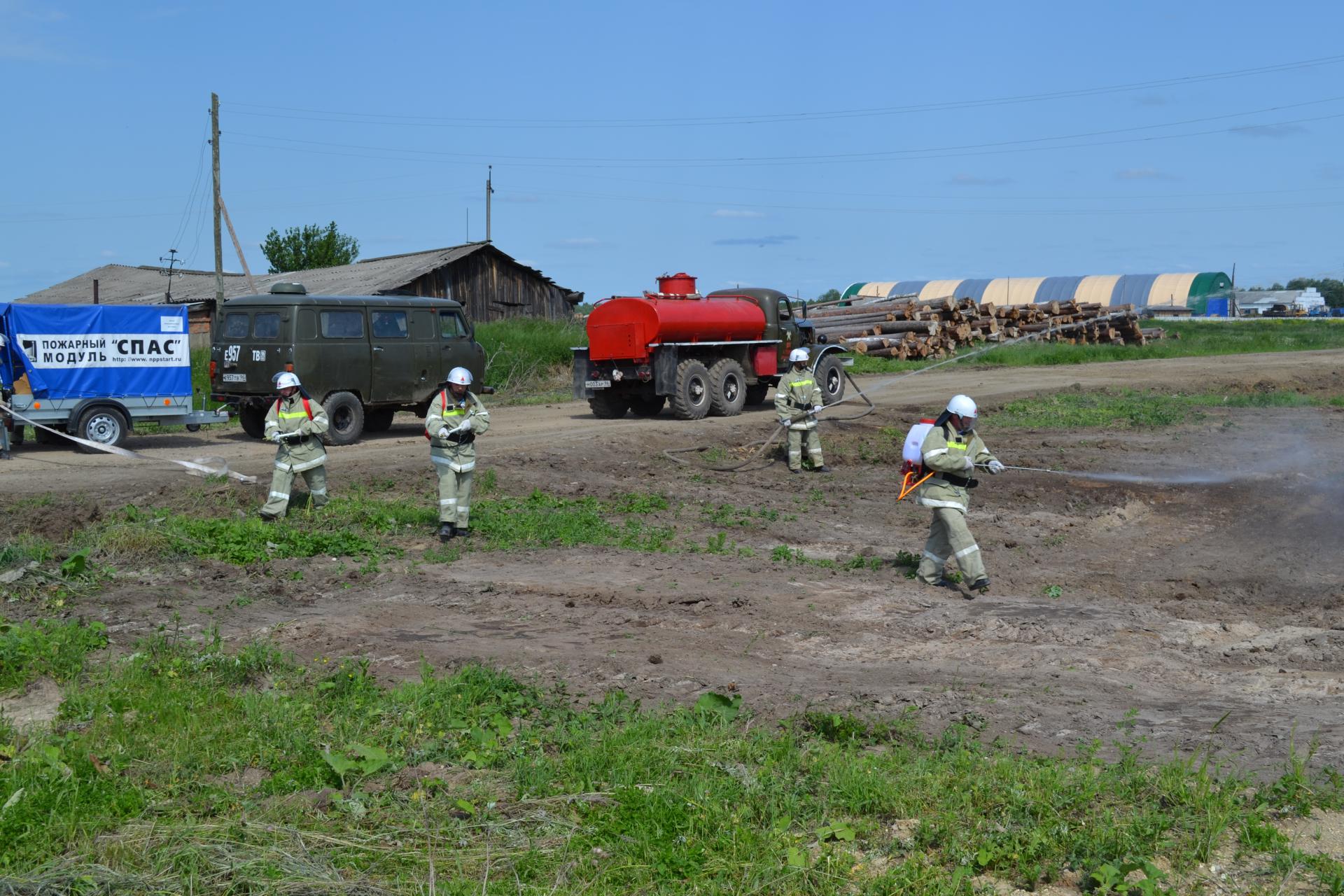 По тактическому замыслу показного учения, на окраине села возник пожар в индивидуальном жилом доме. Учитывая сезонные и метеорологические условия, возникла угроза распространения пожара по сухой траве на соседние дома. В 60-ю пожарную часть федеральной противопожарной службы, которая находится в г.Ирбите на расстоянии 58 км от села, поступает сообщение о пожаре и угрозе населенному пункту.