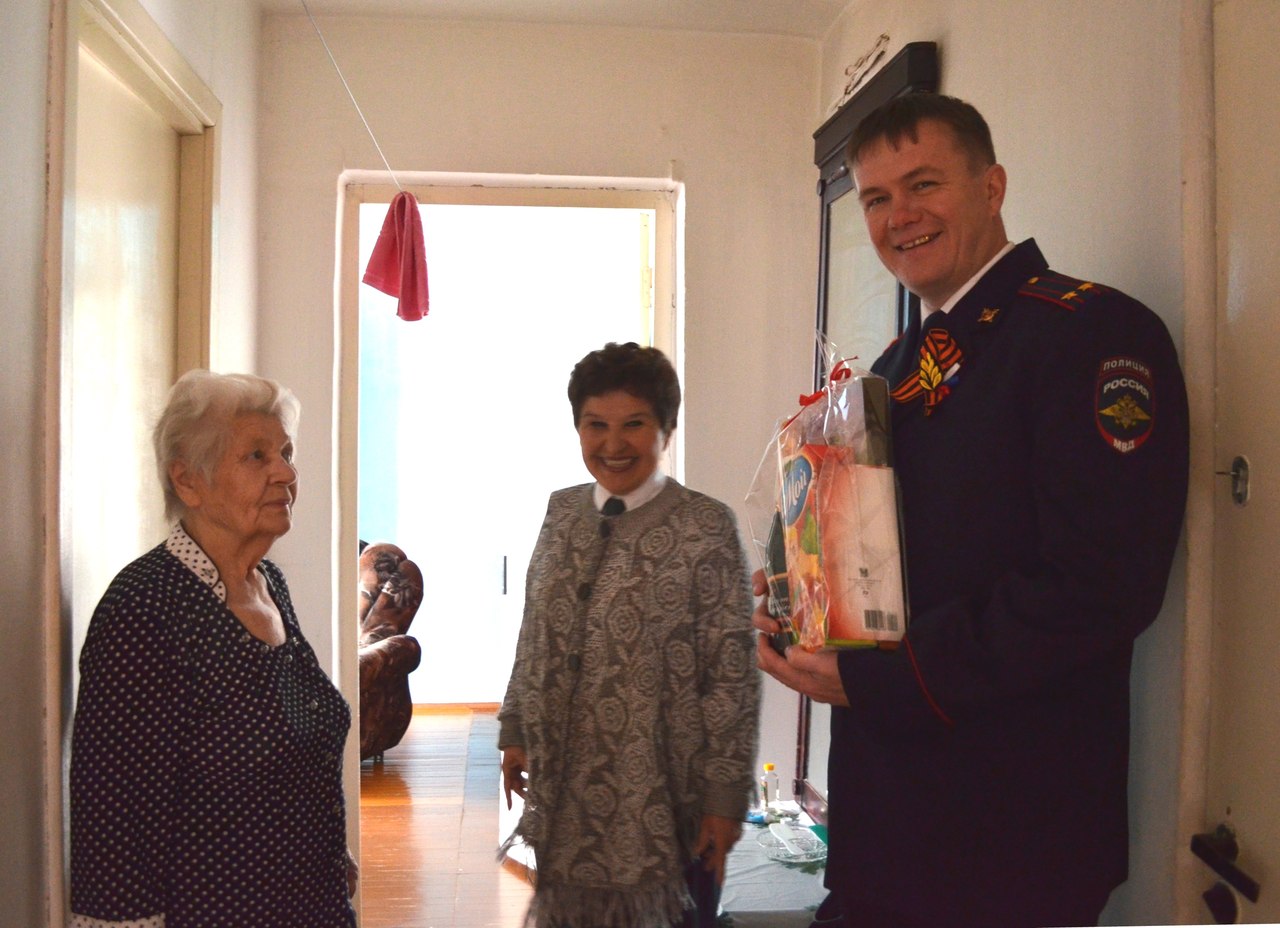 Кроме слов благодарности за вклад в дело Великой Победы и поздравлений с праздником гости привезли с собой и небольшие подарки, подготовленные сотрудниками отдела и представителями Совета ветеранов.