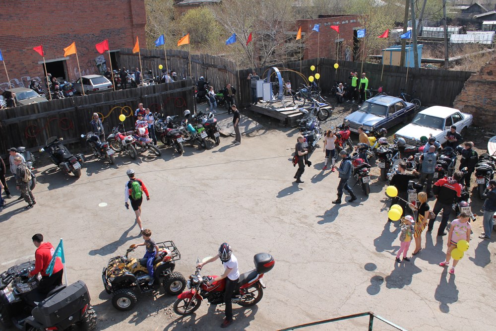 После проезда по площади им.Ленина мотоколонна проехала на территорию Центра мотокультуры, где под музыку и горячий плов проходило общение. Для гостей проводились веселые старты со смешным мотореквизитом, а также состоялись две мотоэкскурсии "По развалинам Мотозавода".