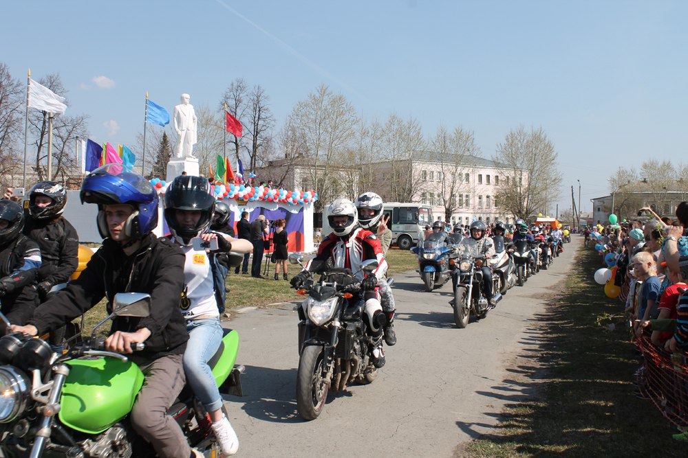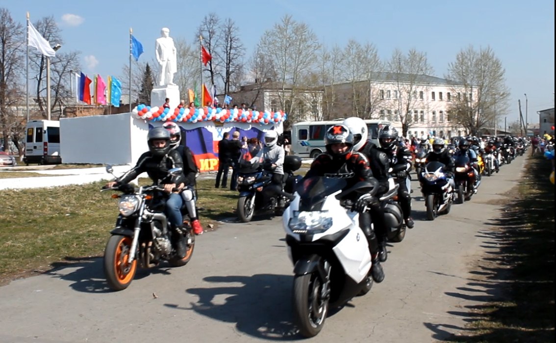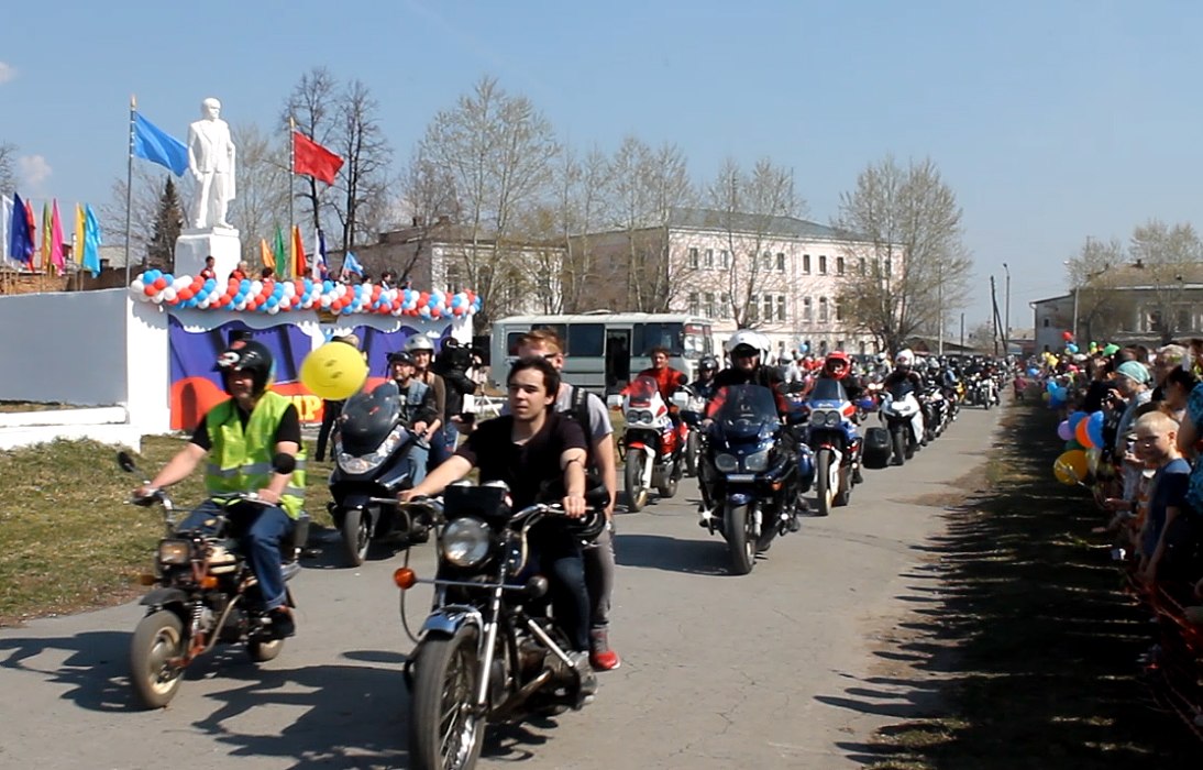 В составе мотоколонны по площади им.Ленина ехали клубы "Центра мотокультуры", а также многочисленные байкеры и мотолюбители, собравшиеся к нам из Ирбита и разных городов ближайших областей - Свердловской, Тюменской и Челябинской.