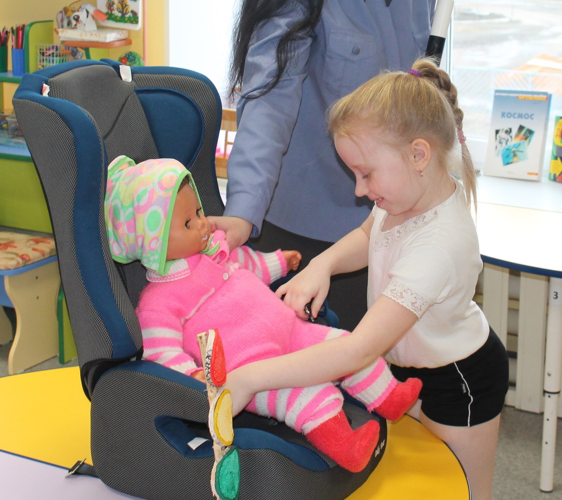 Дети – одна из наиболее уязвимых категорий пассажиров. В ДТП аналогичной тяжести дети страдают значительно больше, чем взрослые пассажиры. Поэтому, выступая инспектор, призывал ребят не забывать об использовании детских удерживающих устройств, о том что от этого зависит их безопасность. Ребятам в ходе мероприятия было продемонстрировано самое надежное удерживающее устройство - это детское автокресло. Малыши познакомились с функционированием кресла, с интересом рассматривали его и даже смогли «примерить» для себя и проявить свое умение пристегиваться в нем самостоятельно.