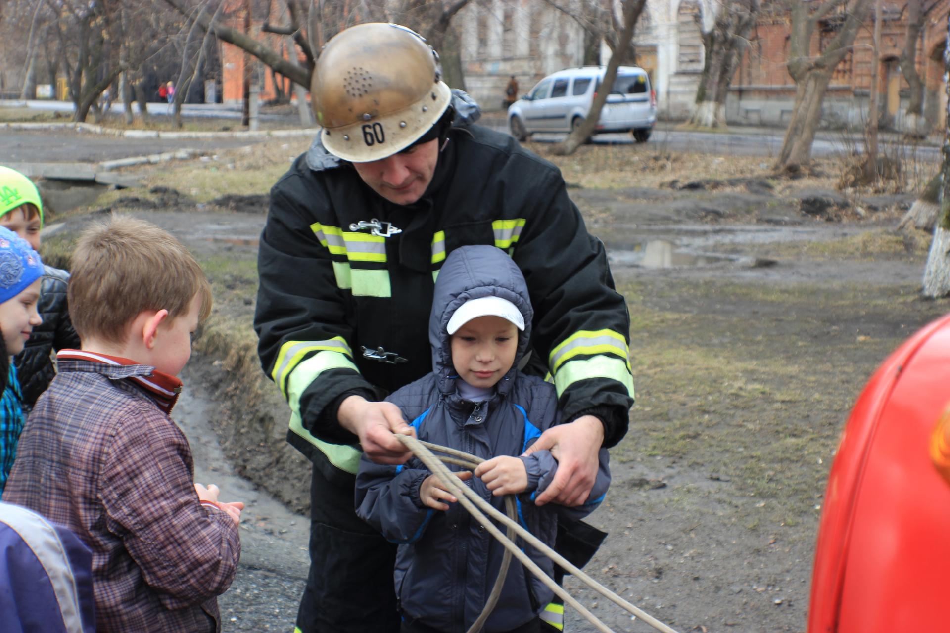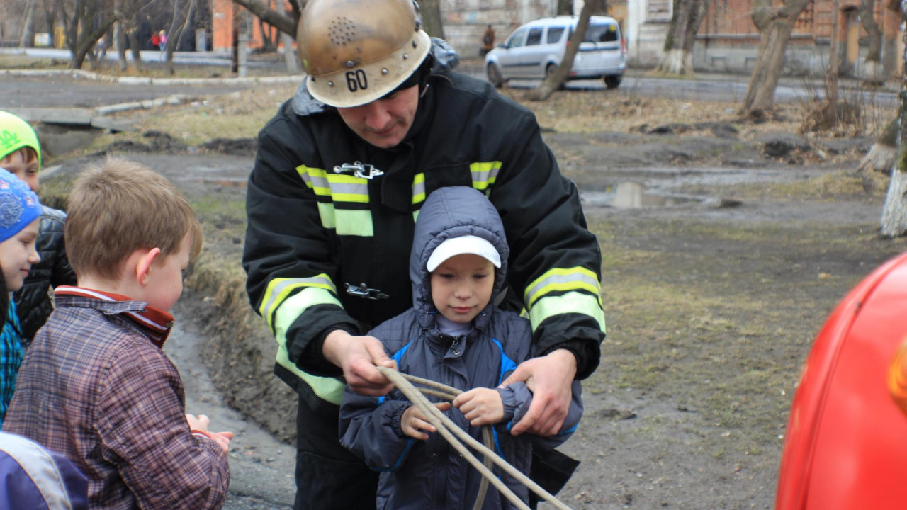 Помимо этого пожарные показали приемы вязания специальных узлов для спасения пострадавших. Некоторые ребята сами попробовали себя в этом нелегком деле и побыли юными спасателями.