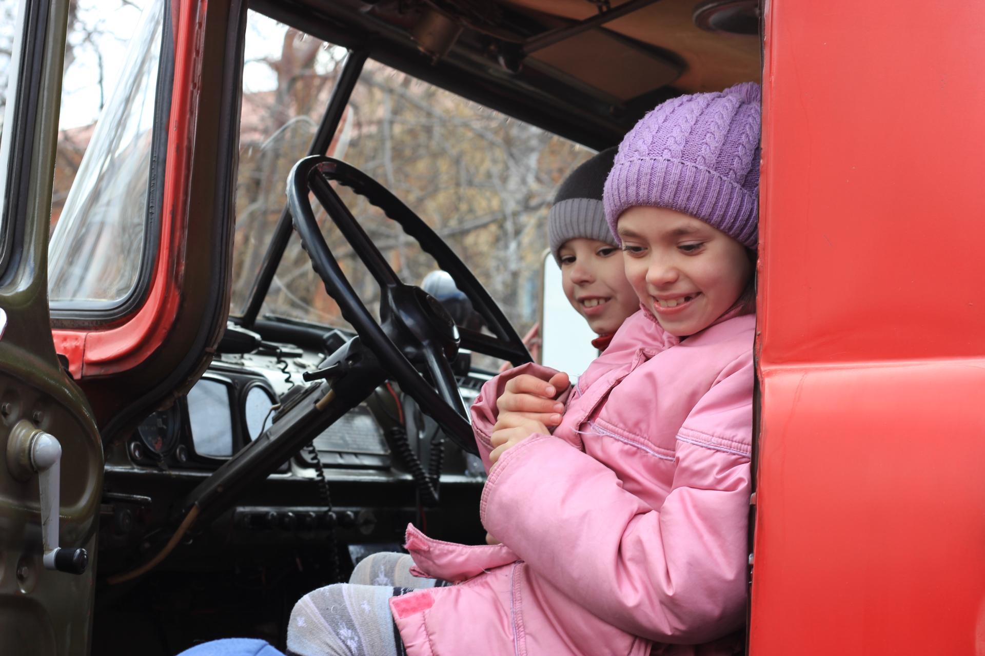 К приходу гостей, а собралось их более ста человек, на фасаде пожарной части уже ожидали три пожарные машины и дежурный караул. Первой была продемонстрирована работа автолестницы, которая под вой сирены ловкой рукой водителя была выдвинута на тридцатиметровую высоту. После всеобщих возгласов собравшиеся поделились на группы и приступили к подробному изучению «начинки» пожарных автоцистерн. Кто-то даже забрался в кабину и успел немного порулить.