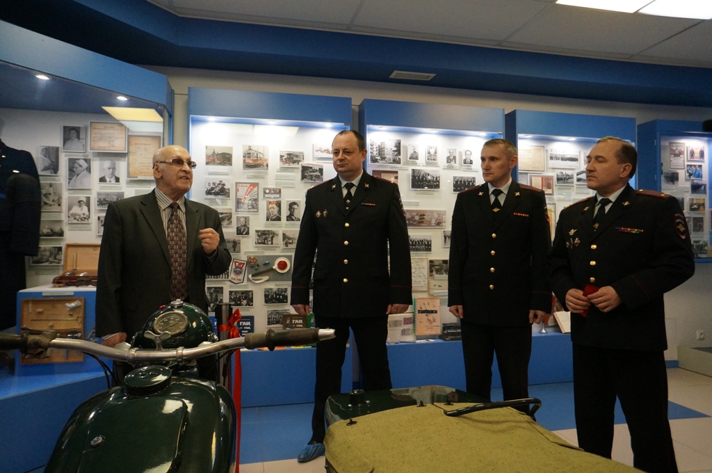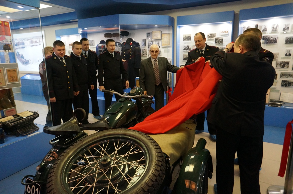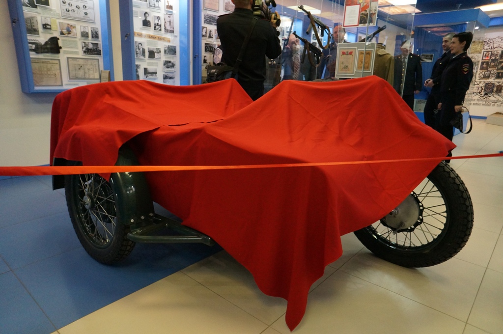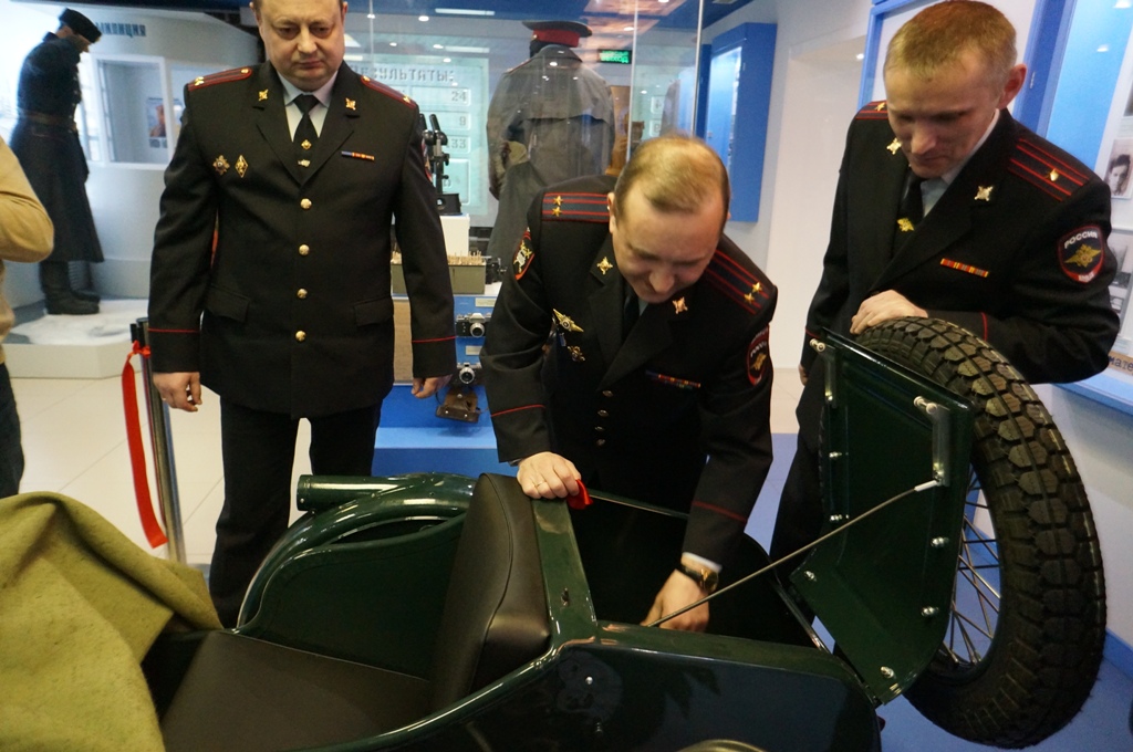 Добавим, что торжественное мероприятие в музее ГУ МВД России по Свердловской области было приурочено к патриотической акции «Неделя мужества», ежегодно проводимой органами внутренних дел. В нем приняли участие заместитель начальника Управления ГИБДД ГУ МВД России по Свердловской области подполковник полиции Сергей Плешко, начальник отдела ГИБДД УМВД России по городу Екатеринбургу подполковник полиции Вячеслав Горев, руководители отделений ГИБДД Верхней Пышмы и Березовского, а также ветераны и пенсионеры МВД РФ, действующие сотрудники. Право перерезать алую ленту, отделяющую посетителей от новинки, досталось Петру Решетнюку, Сергею Плешко и Вячеславу Гореву.