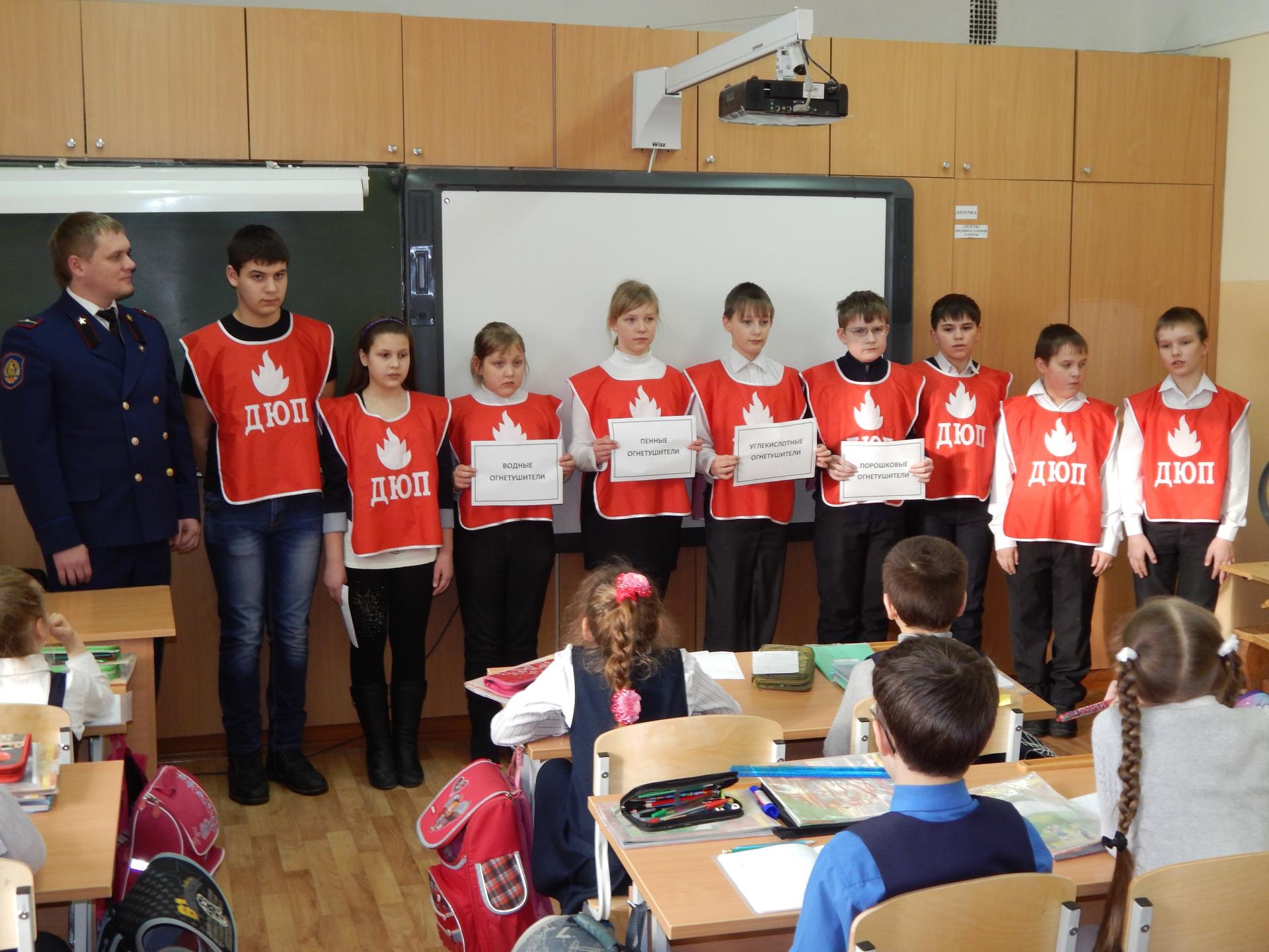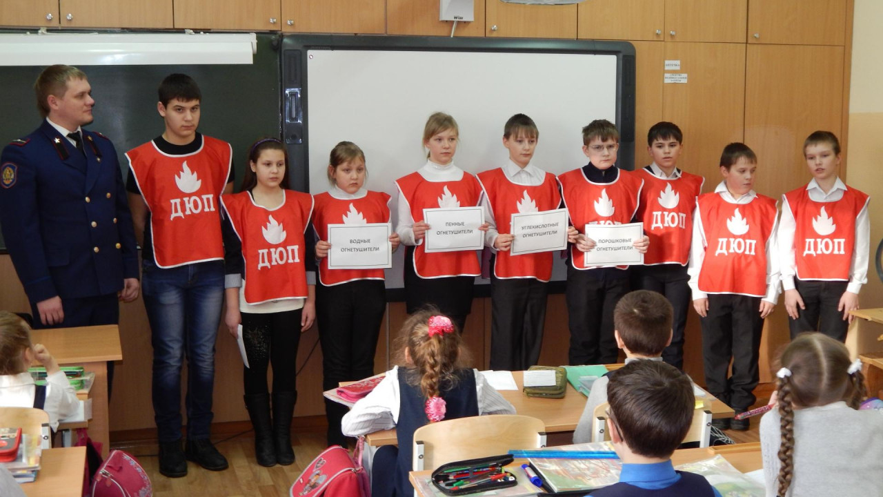 ДЮП «Экстрим» регулярно знакомит своих младших друзей по школе с основными правилами пожарной безопасности и конечно такой день в истории, не мог остаться незамеченным. Дружина совместно с ВДПО разработало познавательно-обучающее занятие, целью которого стало знакомство младших школьников с огнетушителем. И именно в преддверии дня огнетушителя, в каждом классе начальной школы состоялась встреча членов ДЮП с учениками. Школьники с большим увлечением слушали интересный рассказ об истории создания огнетушителя, о том, какие виды данного устройства существуют и в каких сферах применяются.