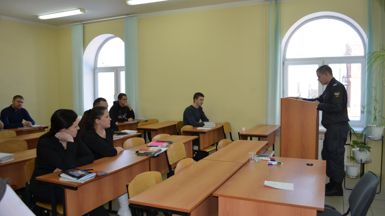 Вторая встреча состоялась несколькими днями позднее. На этот раз полицейские сами поехали в гости к студентам ирбитского филиала Уральского института коммерции и права. С учетом более старшего возраста собеседников, в этой аудитории разговор в большей степени касался деятельности таких общественных объединений, как добровольная народная дружина и общественный совет при отделе полиции. Инспектор Группы охраны общественно порядка Денис Боярских подробно рассказал собравшимся о тех функция, которые, согласно действующему законодательству, сегодня могут быть возложены на добровольных помощников полиции, а так же о том, как можно стать членом уже существующей дружины или создать собственную, обеспечивающую охрану общественного порядка на территории учебного заведения или даже многоквартирного дома.