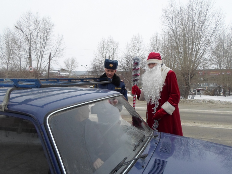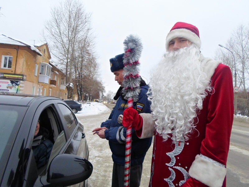 Не оставили сотрудники Госавтоинспекции без внимания и взрослых ирбитчан. Полицейский Дед Мороз вышел на улицы города, где вместе с инспекторами ДПС поздравил с наступающими праздниками всех участников дорожного движения, пожелали им спокойных, мирных дорог в наступающем году, а также призвали быть внимательными и взаимно вежливыми на дорогах города.