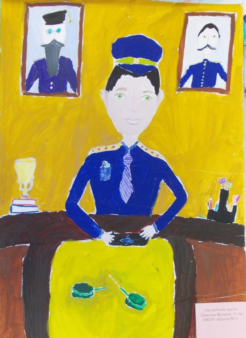Стоит отметить, что темой для своих работ, представленных на конкурсе в Ирбите, ребята выбрали самые разные моменты из жизни полицейских. На рисунках изображены и сотрудники Госавтоинспекции, обеспечивающие безопасность дорожного движения на улицах города, и вневедомственная охрана, проводящая задержание преступника, и кинологи патрульно-постовой службы, преследующие преступников вместе со своими четвероногими коллегами. Но особенно запомнилась членам конкурсной комиссии работа ученицы пятого класса средней школы № 1 Насти Стаиной под названием «Ура! Премия!», продемонстрировавшая самый непосредственный взгляд ребенка на жизнь людей в погонах.